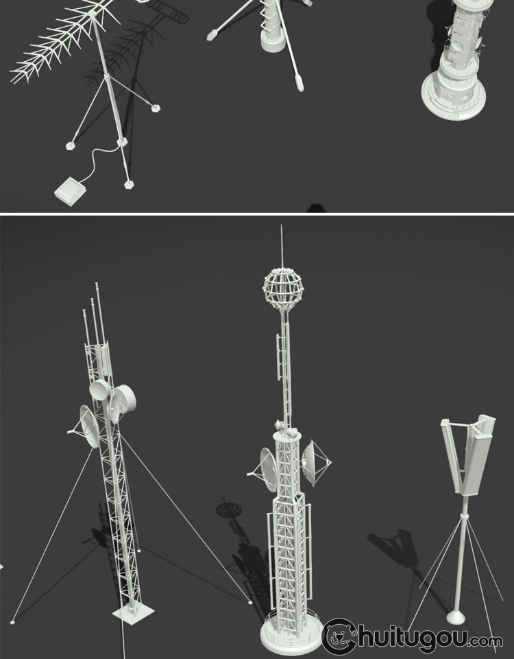 36款3dsMAX无线电塔信号塔天线通讯塔信号接收塔3D模型FBX素材OBJ