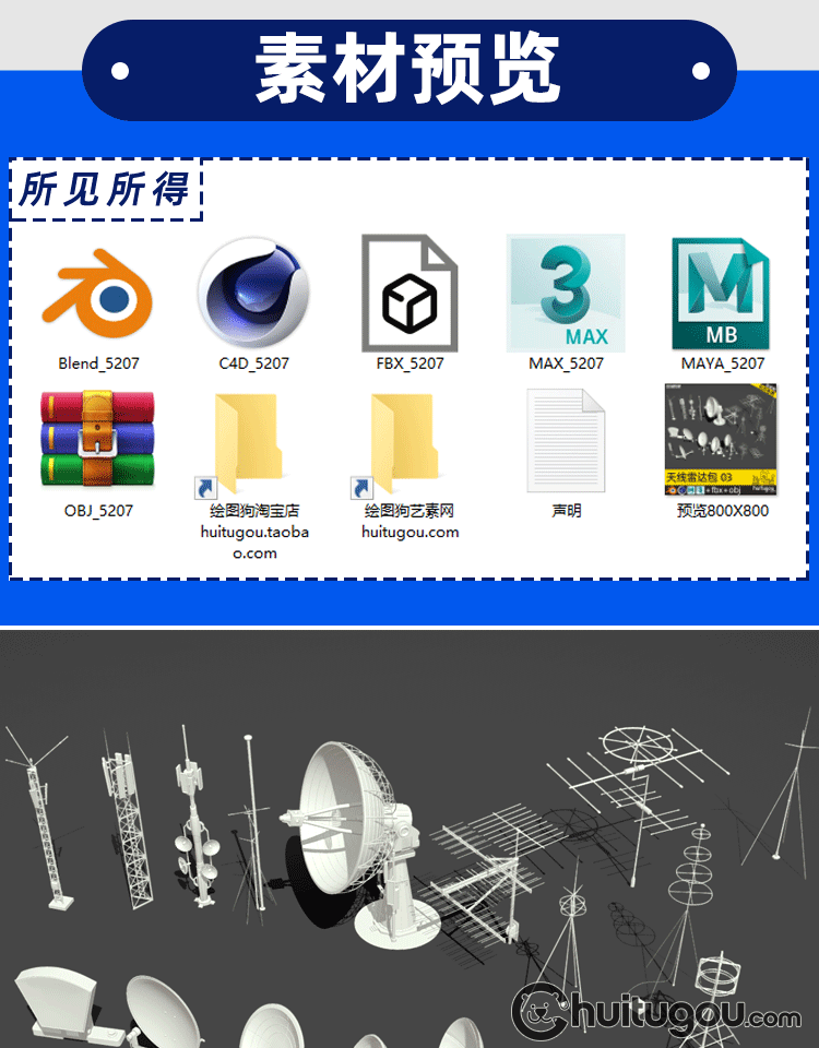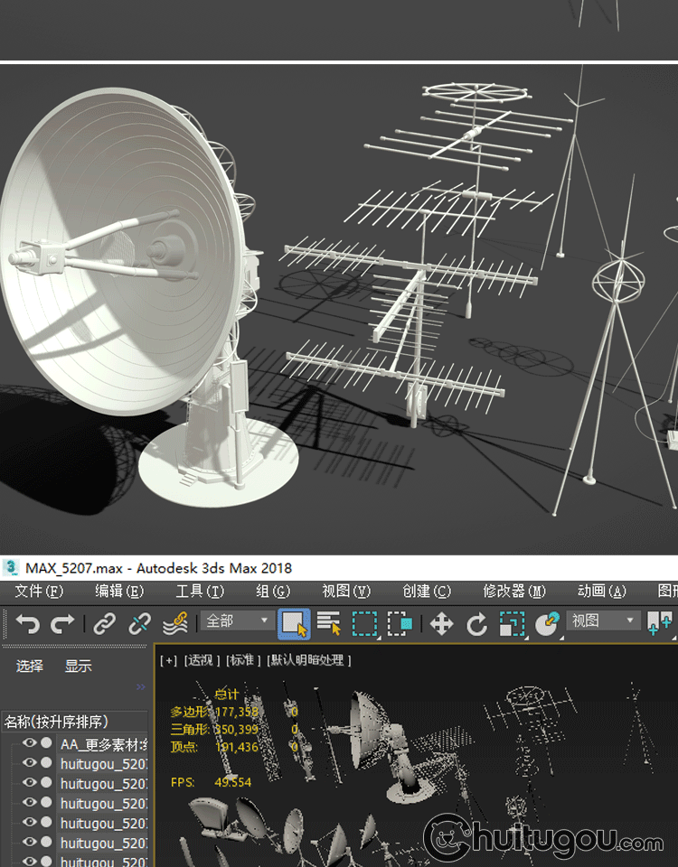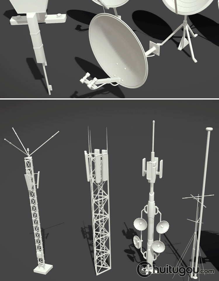 20款3D天线雷达模型MAYA电视天线信号接收器无线电发射MAX素材OBJ