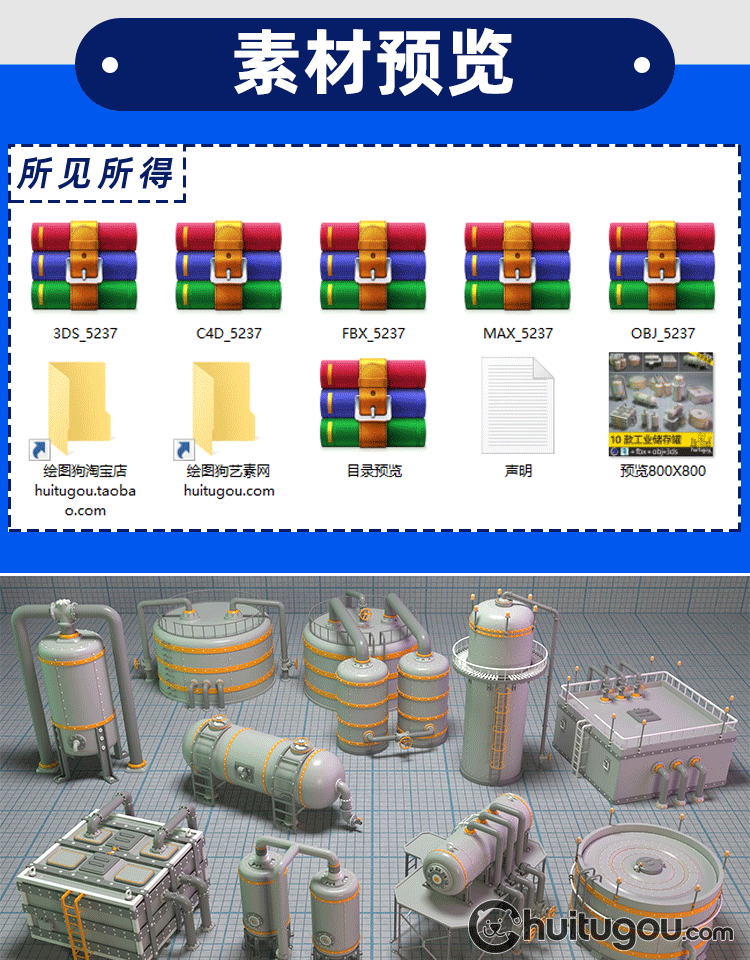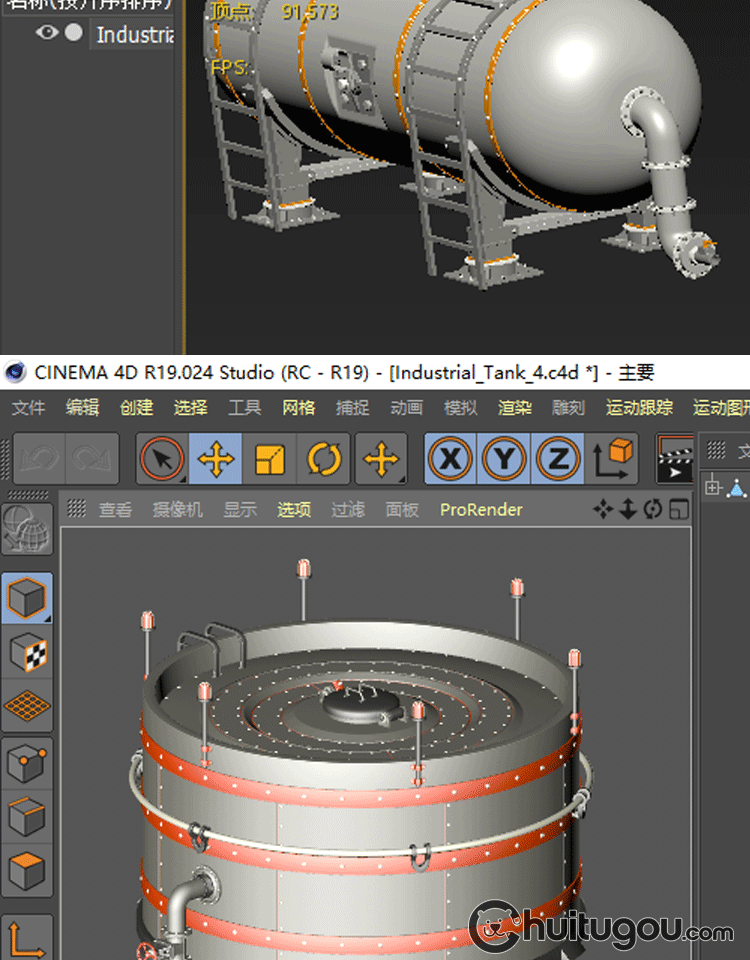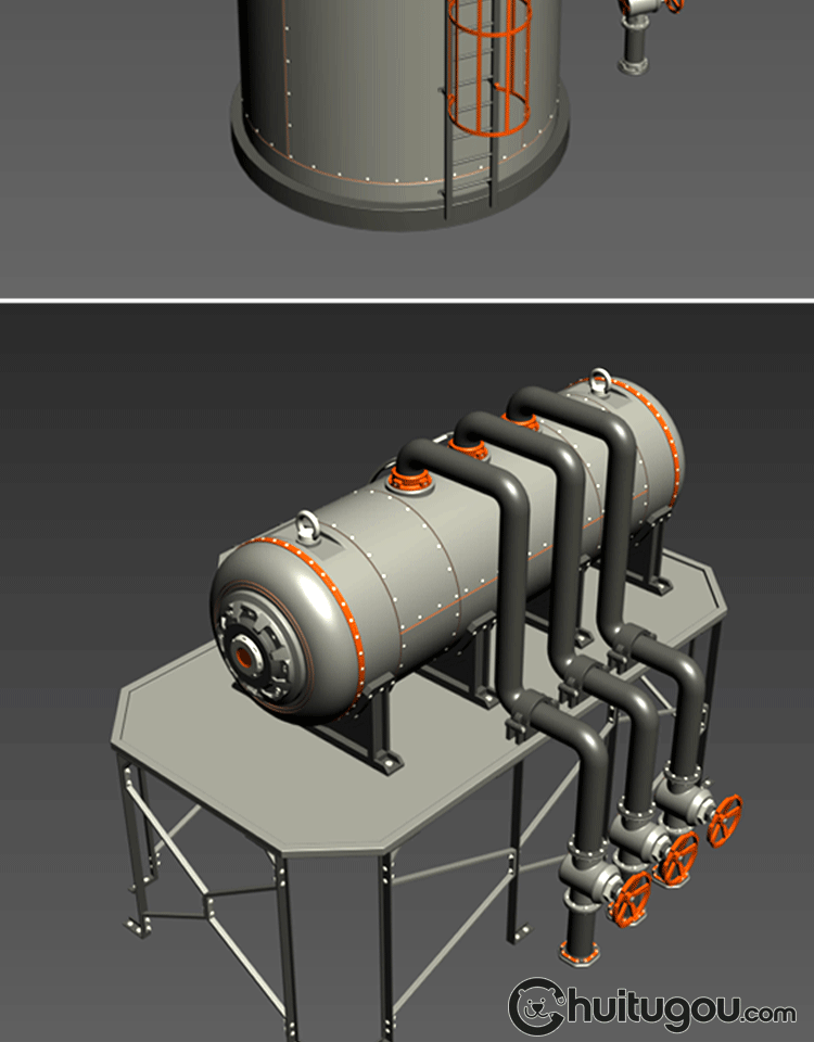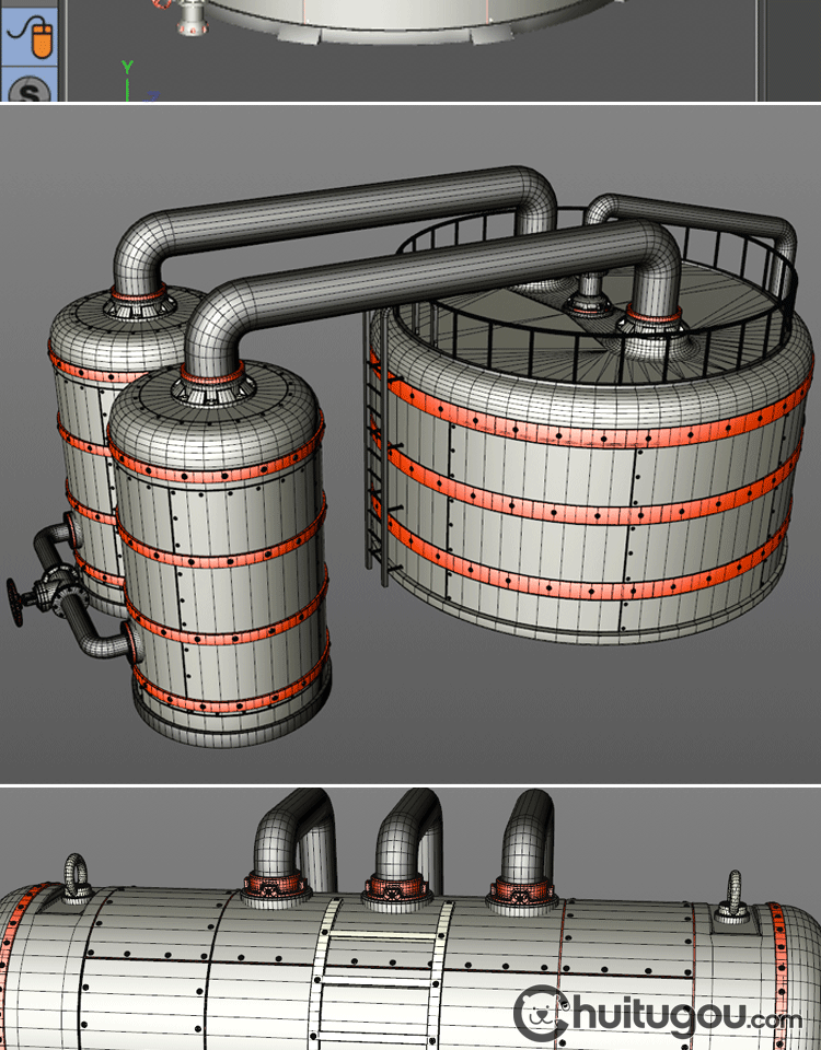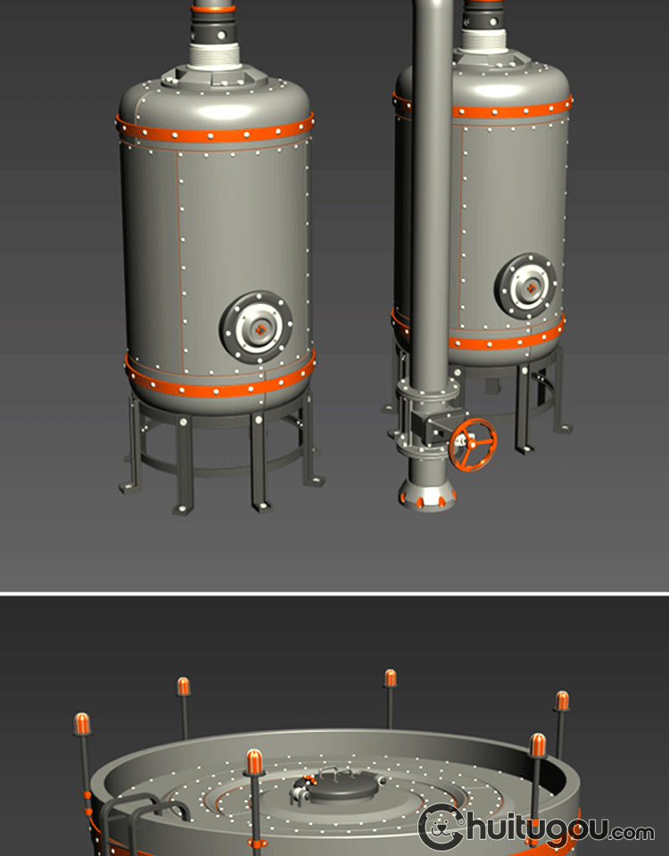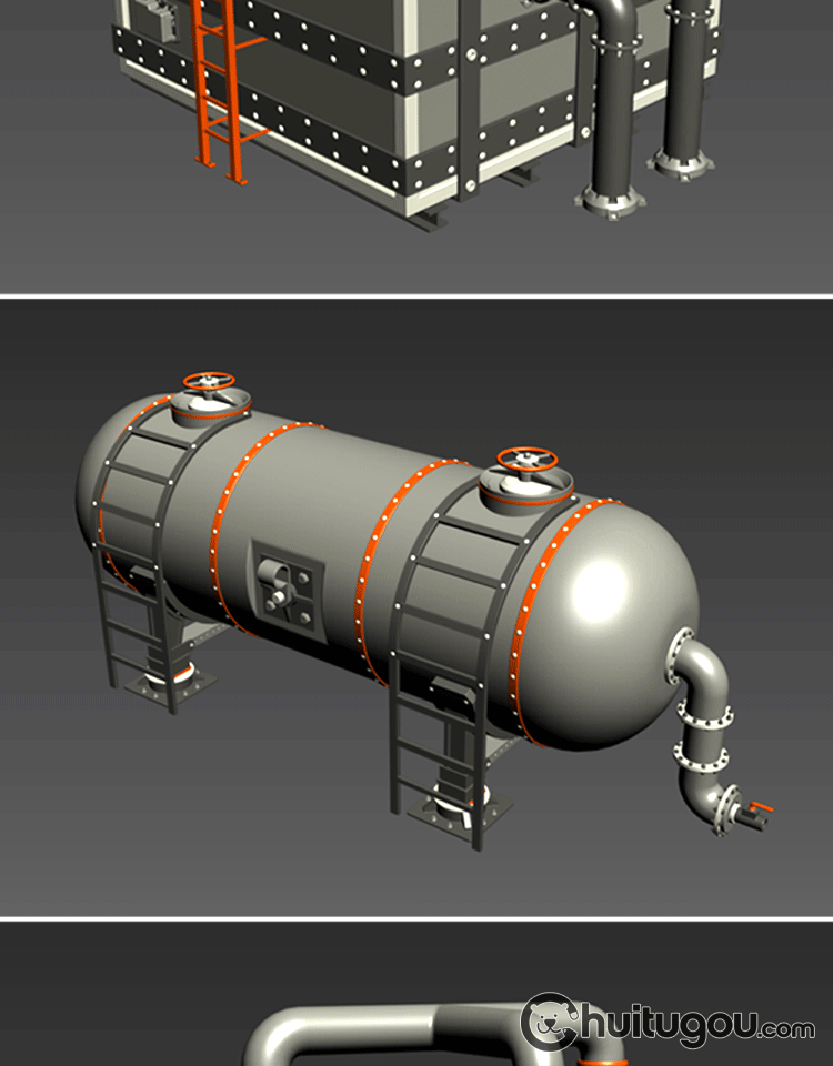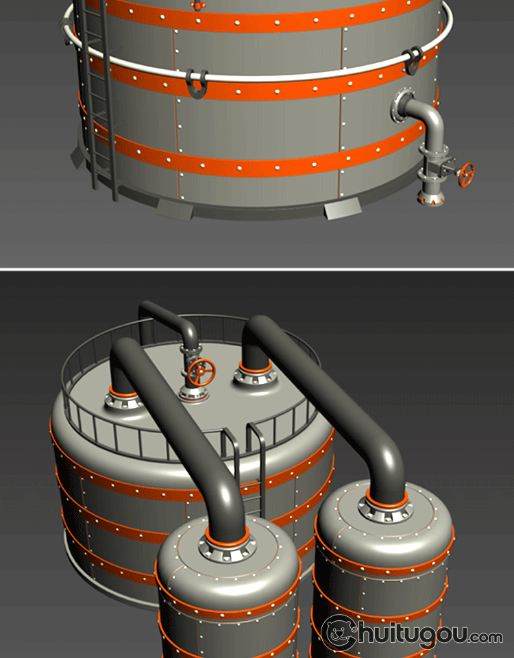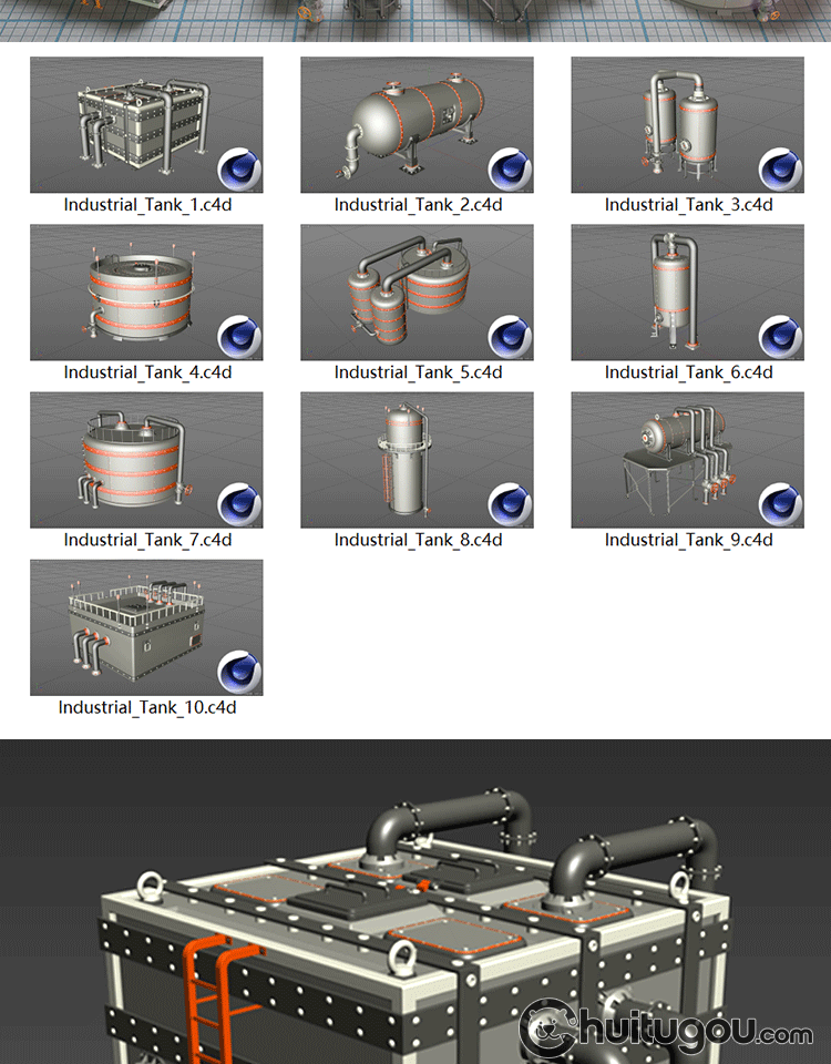 3D工业储存罐模型C4D工厂水箱油罐化工存储设备3ds素材源文件OBJ