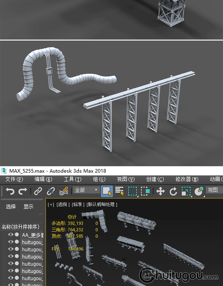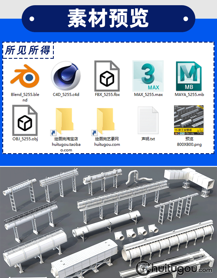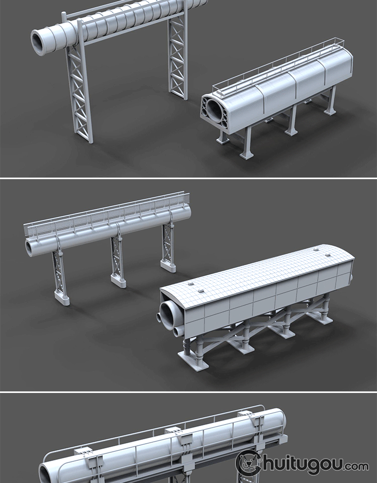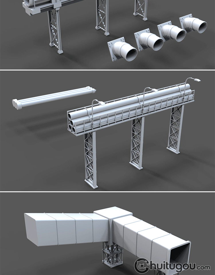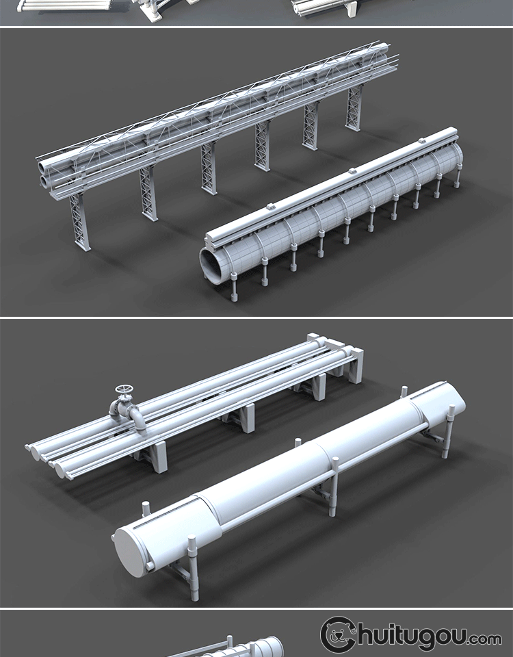 3D工厂工业管道模型素材C4D白模MAYA燃气排气管道Blender OBJ素材