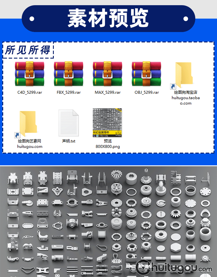 C4D硬表面金属零件3D模型Blender科幻机械工业配件MAX建模素材OBJ