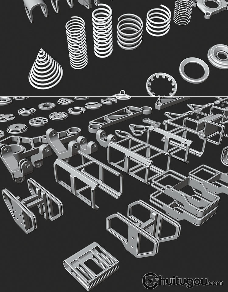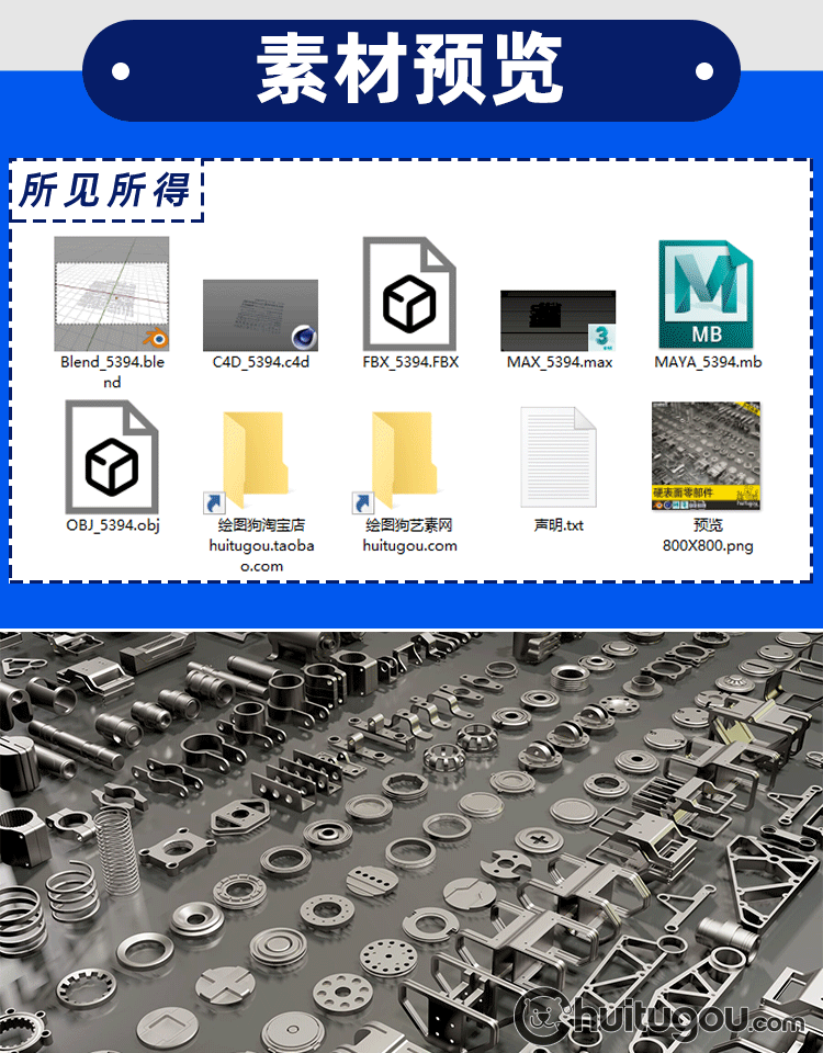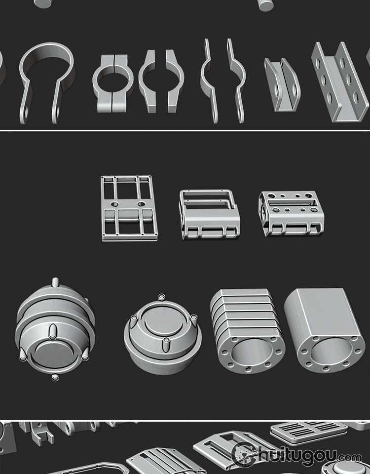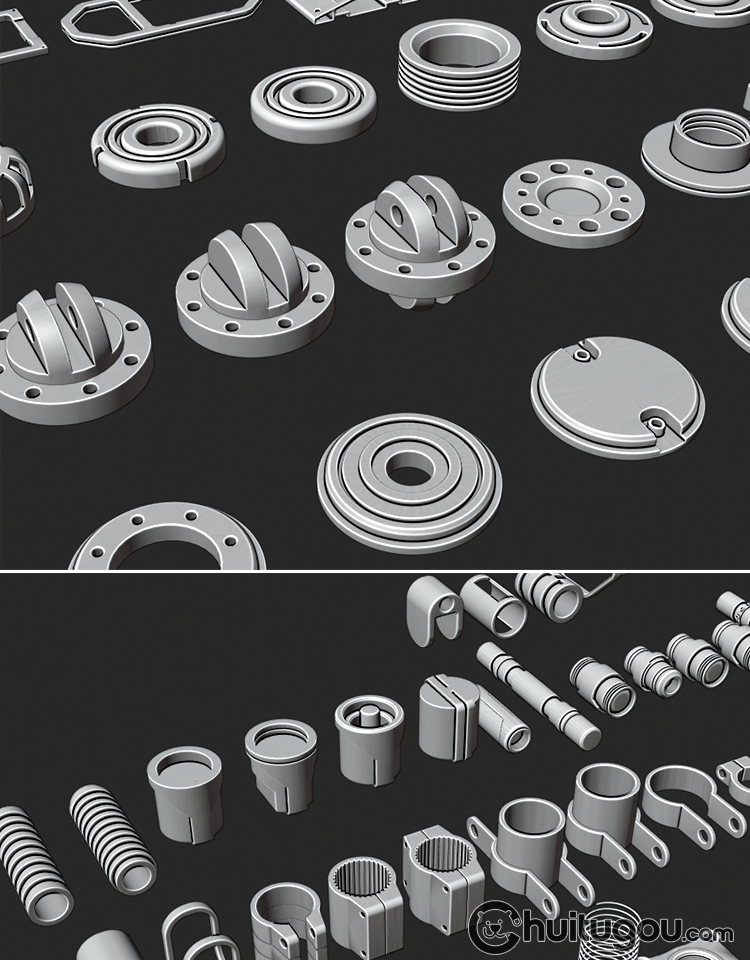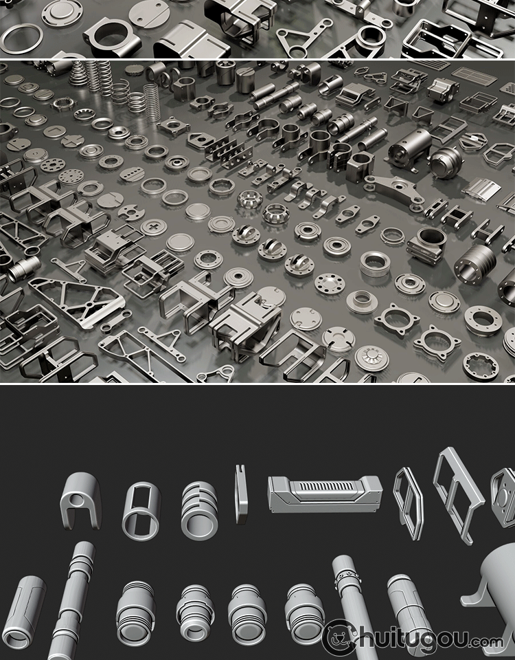 C4D硬表面金属零件3D模型Blender科幻机械工业配件MAX建模素材OBJ