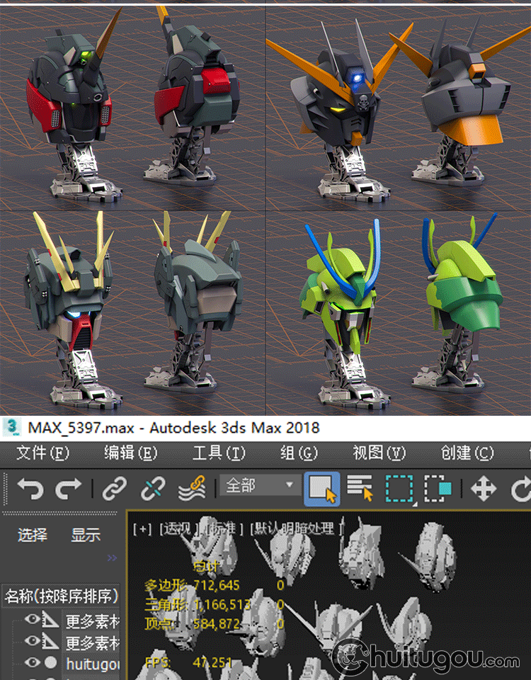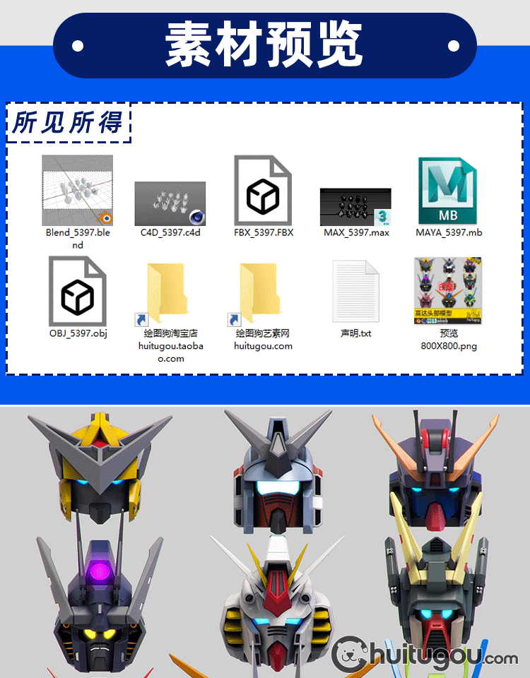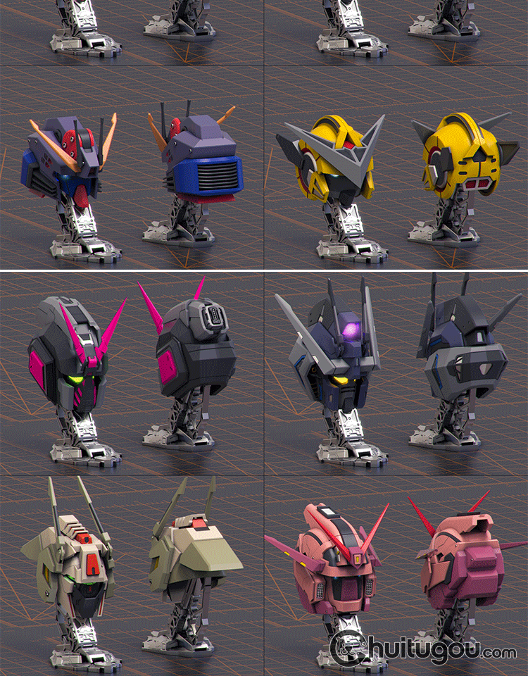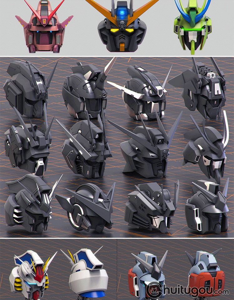 高达机器头部C4D科幻机甲战士Blend机械硬表面MAX设计建模素材OBJ