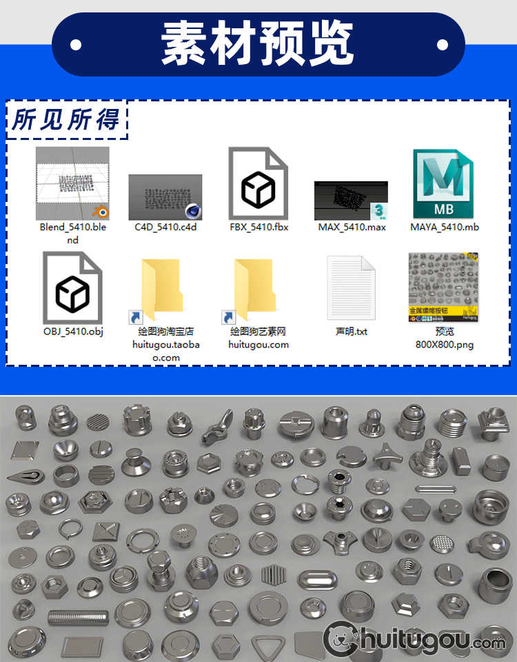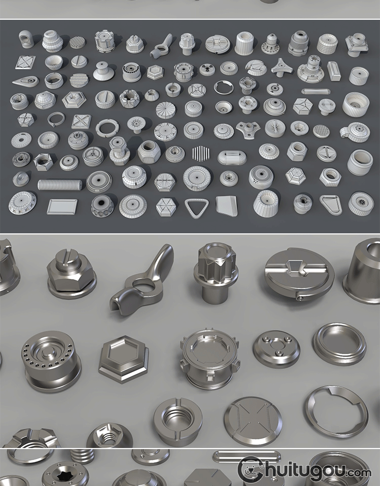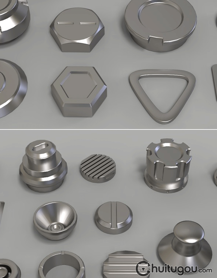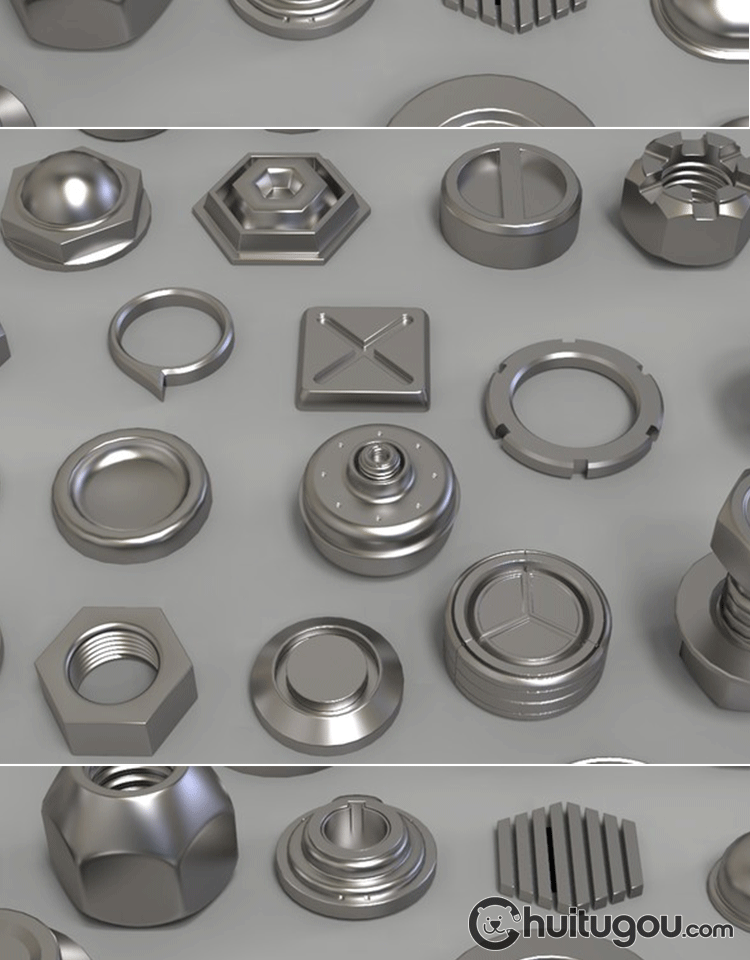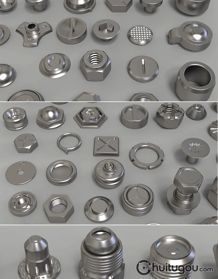 金属螺帽螺栓3D模型C4D五金零件旋转按钮螺丝MAYA三维建模素材OBJ