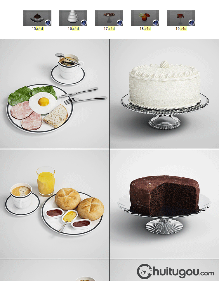 C4D写实食物食品3D模型FBX下午茶蛋糕饮料果盘披萨冰激凌OBJ素材