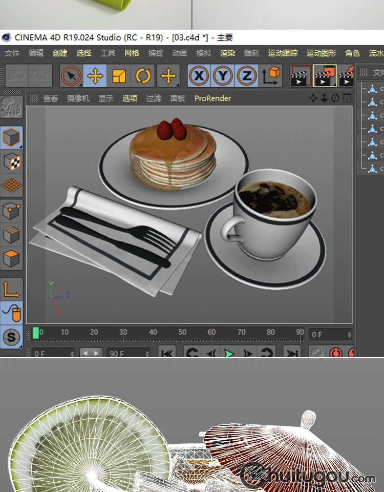 C4D写实食物点心3D模型FBX菜板碗碟OBJ三维渲染设计素材源文件