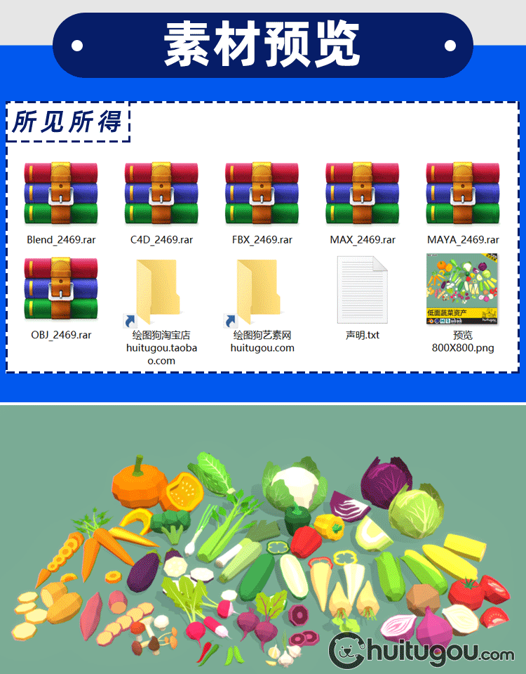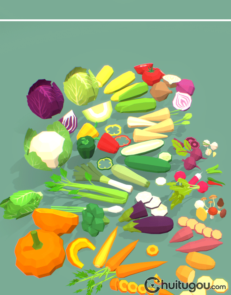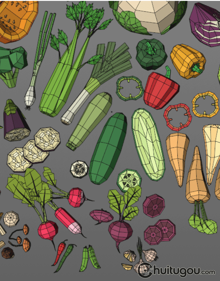 低面 蔬菜水果模型C4D西瓜南瓜黄瓜辣椒包菜玉米FBX菠萝西红柿OBJ