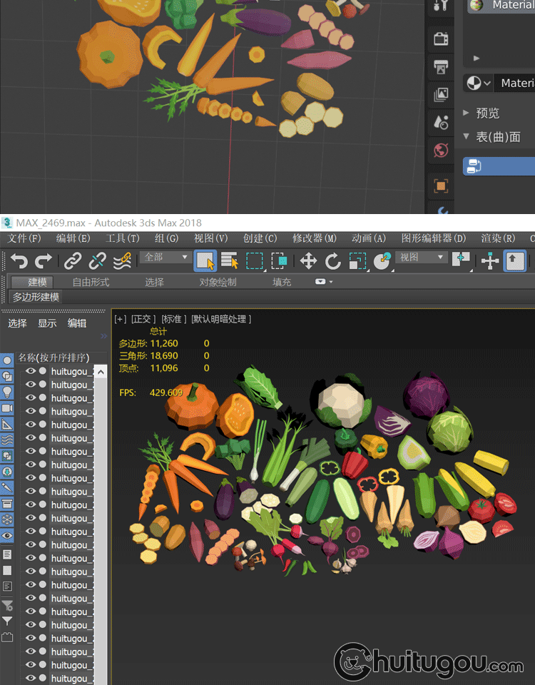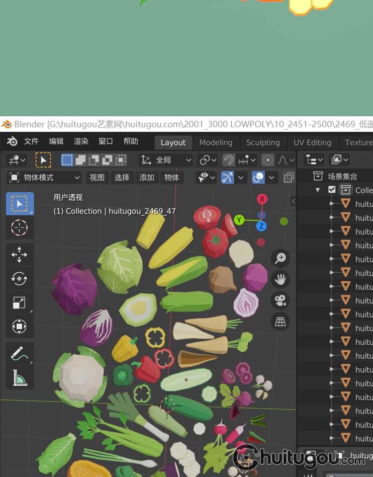 lowpoly风格蔬菜模型C4D卡通南瓜芹菜洋葱西红柿玉米包菜FBX素材