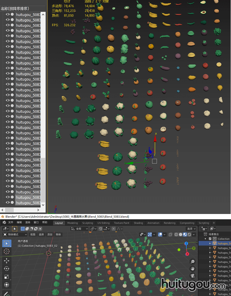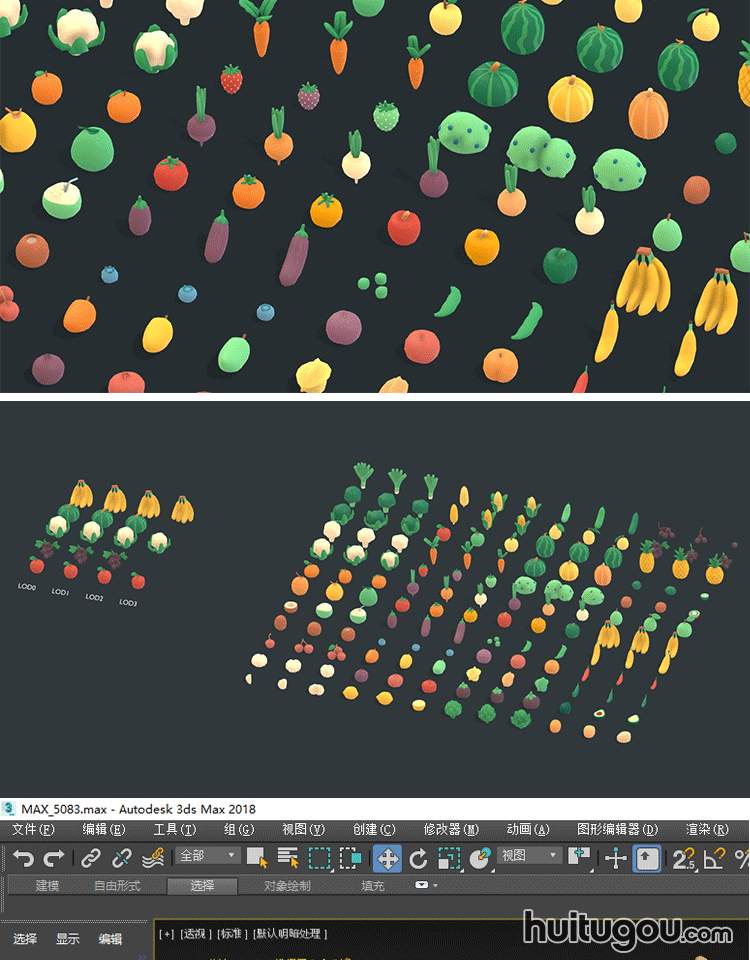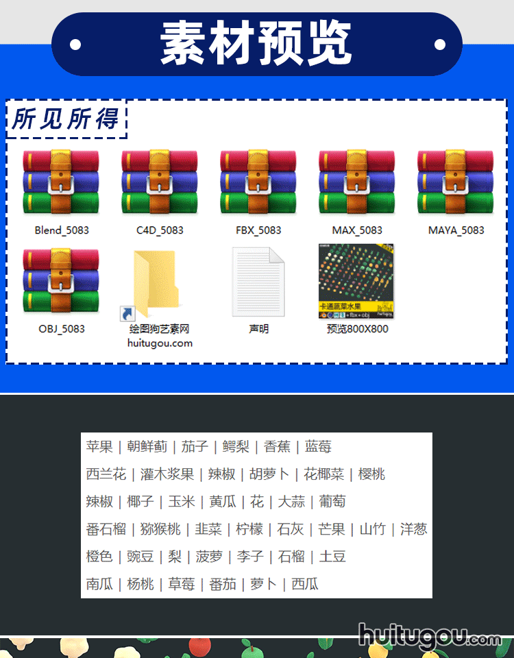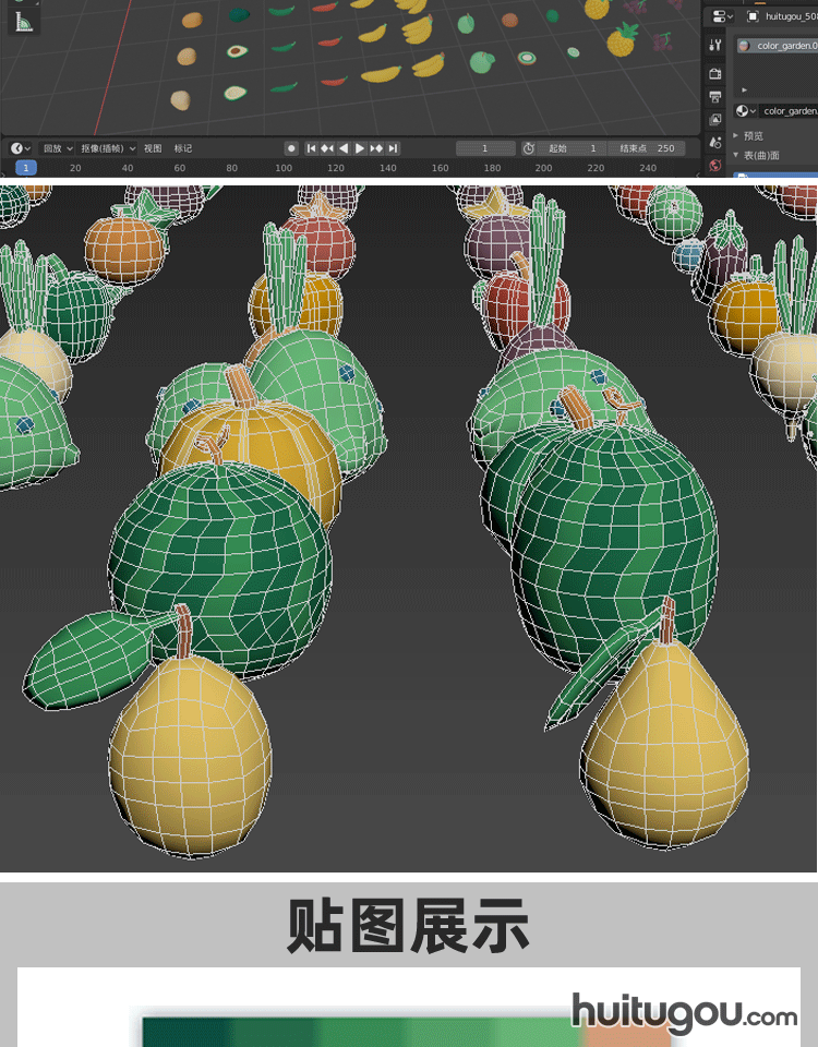 卡通蔬果包Blend水果蓝莓苹果菠萝C4D蔬菜辣椒萝卜mb FBX OBJ素材