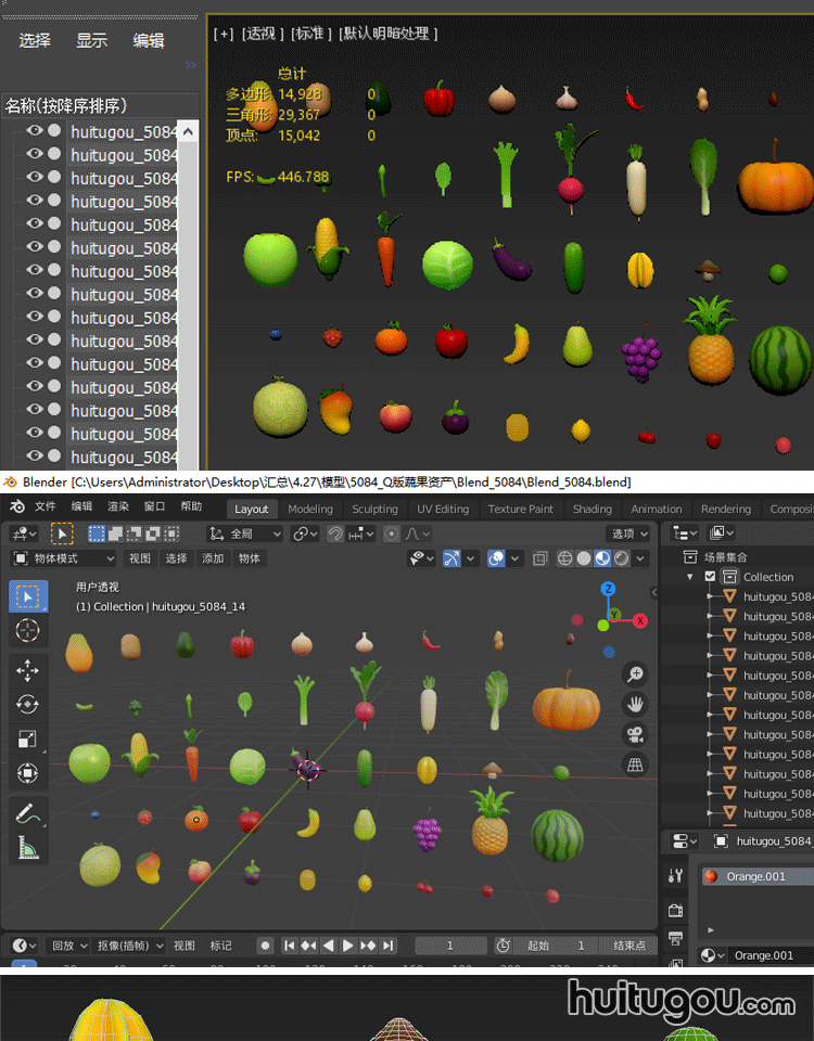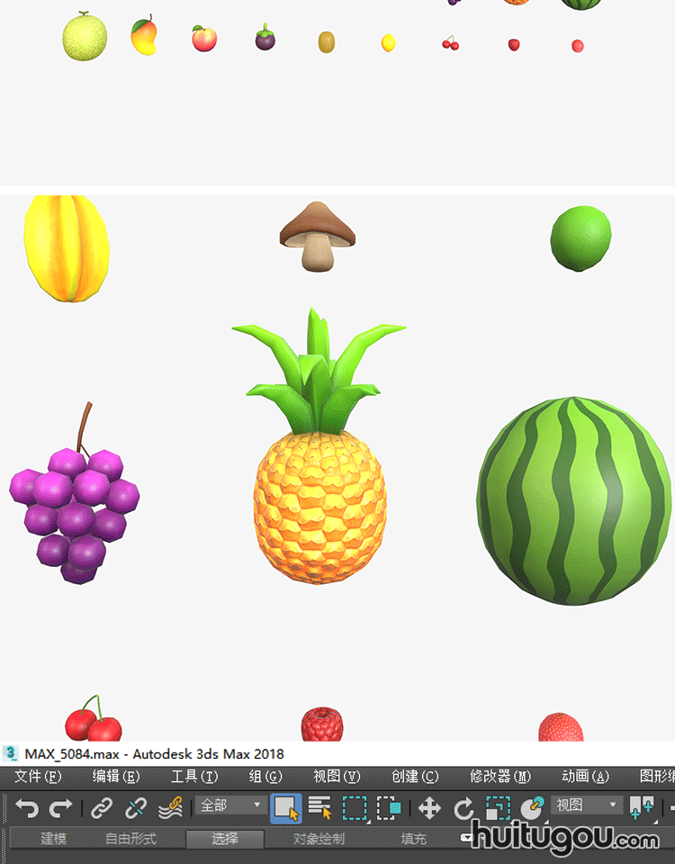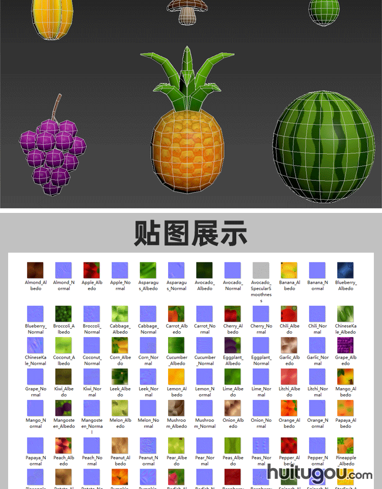 低面卡通水果包Blender南瓜MAYA梨子MAX菠萝FBX西瓜OBJ樱桃3D素材