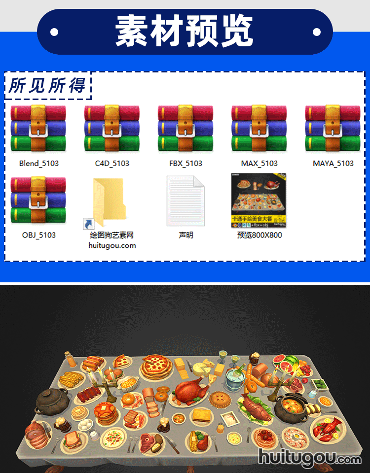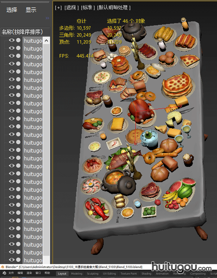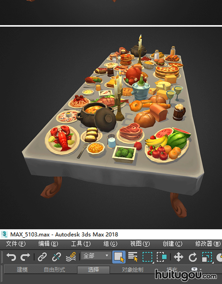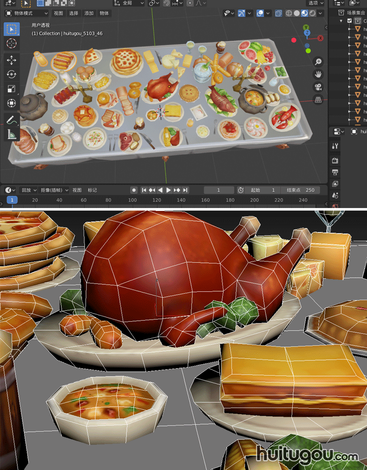 手绘 美食大餐Blender食物烤鸡汤果盘三明治C4D OBJ FBX MAX素材
