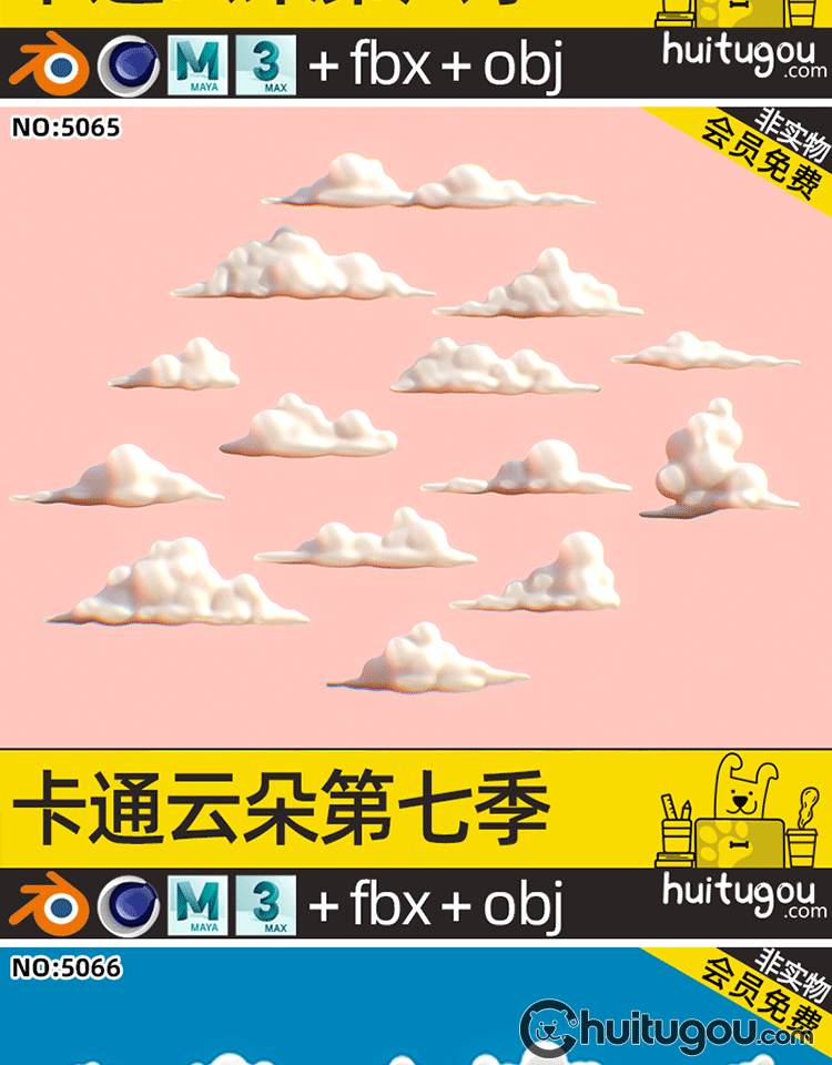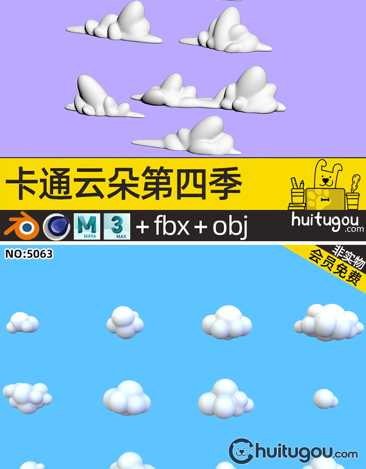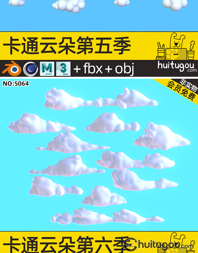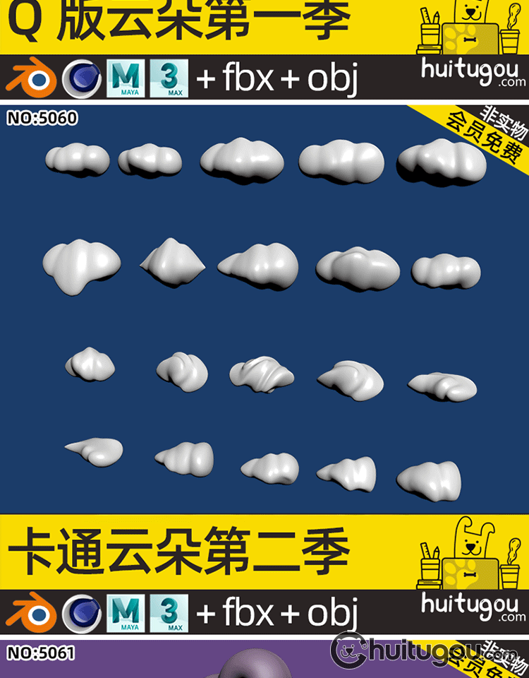 Q版 云朵模型第五季C4D卡通可爱球形云儿浮云Blender FBX OBJ素材
