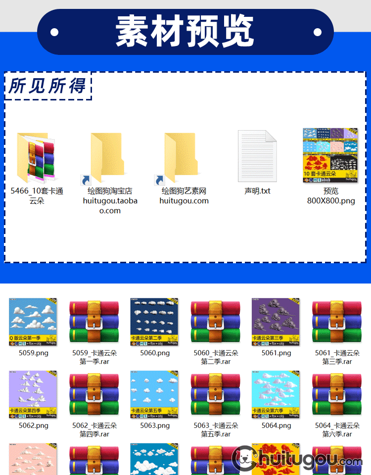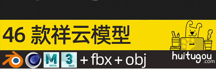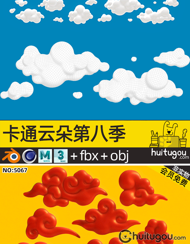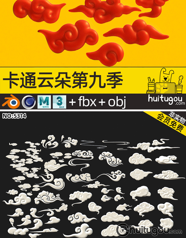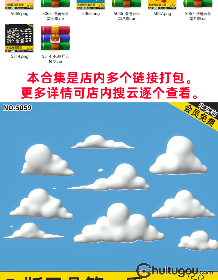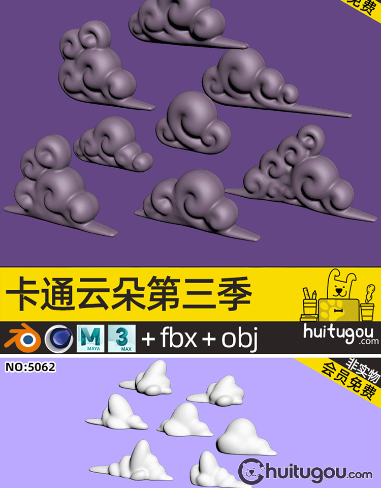 超级合集 卡通云朵3D模型C4D可爱白云MAX低面云儿OBJ国风祥云浮云