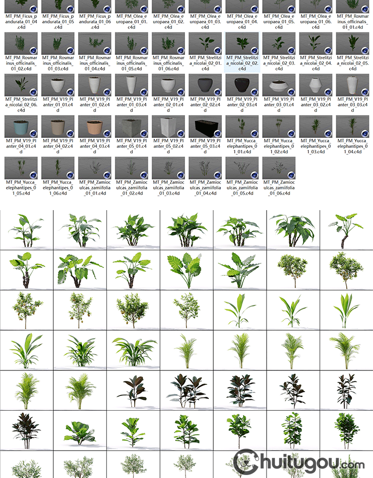 盆栽植物3D模型C4D常见花园植物FBX陶瓷水泥花盆三维建模渲染素材