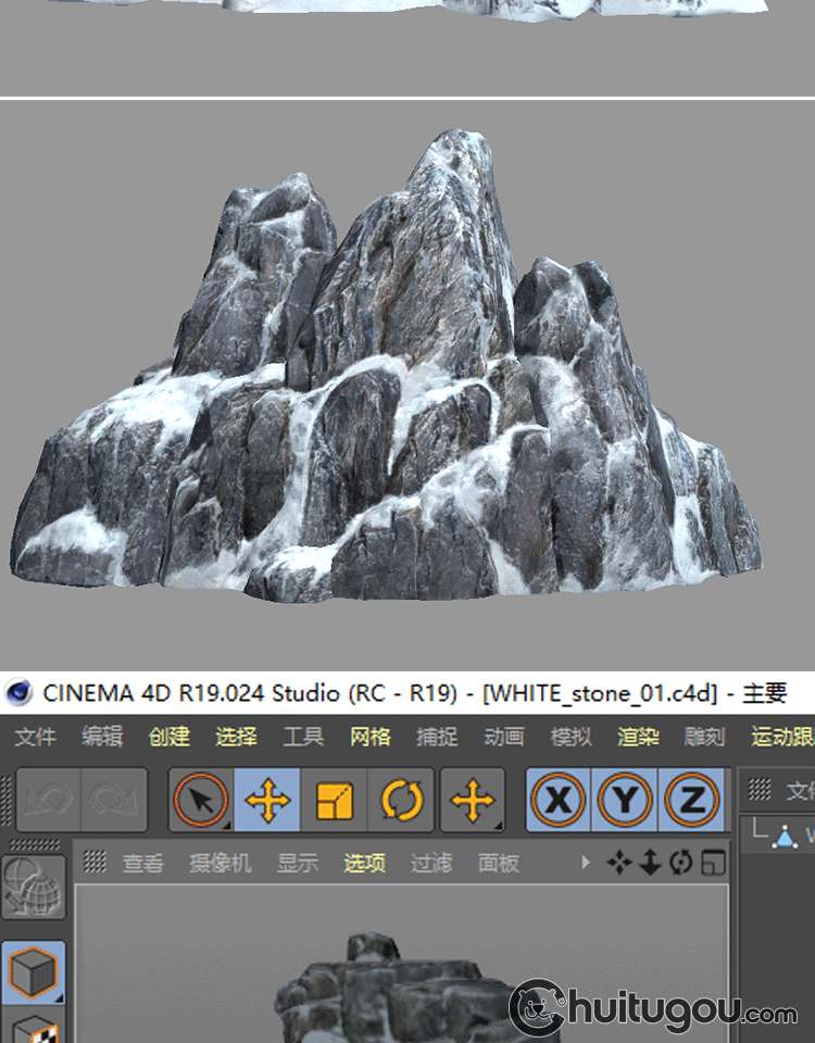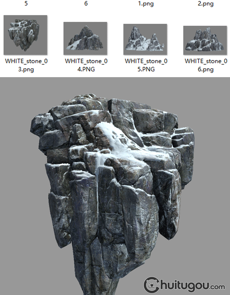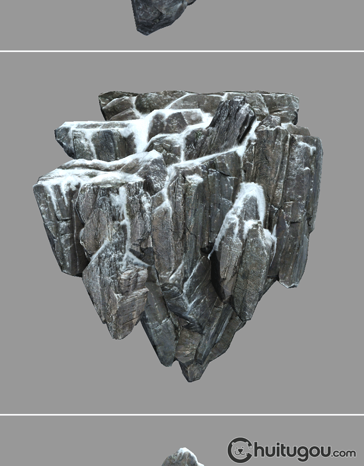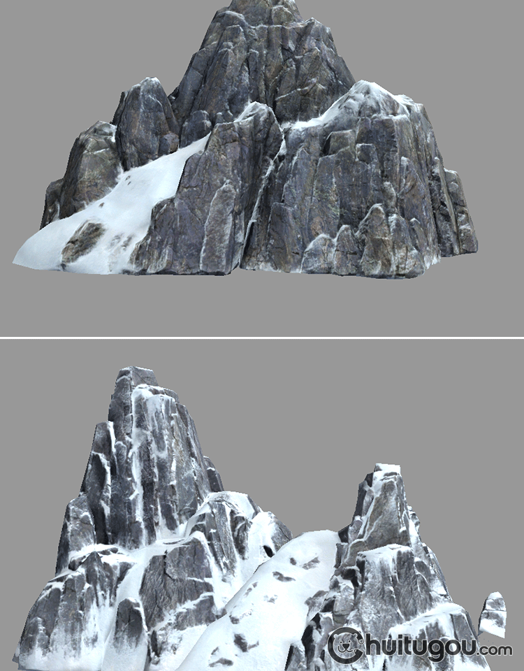 低面3D写实石头山峰模型C4D石山悬崖岩石雪山低模FBX设计素材OBJ
