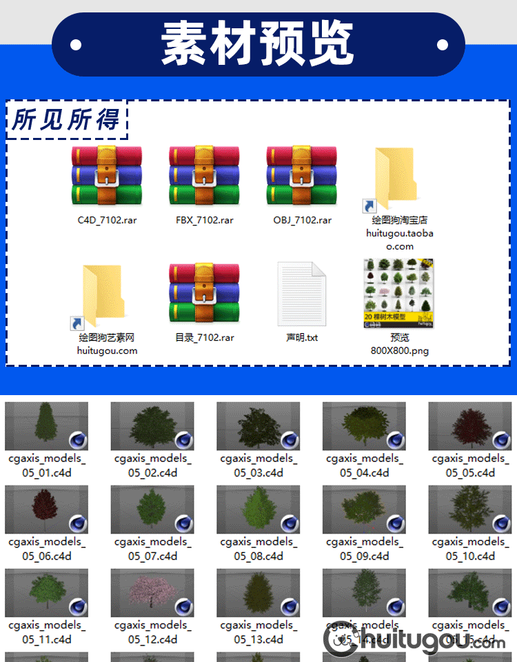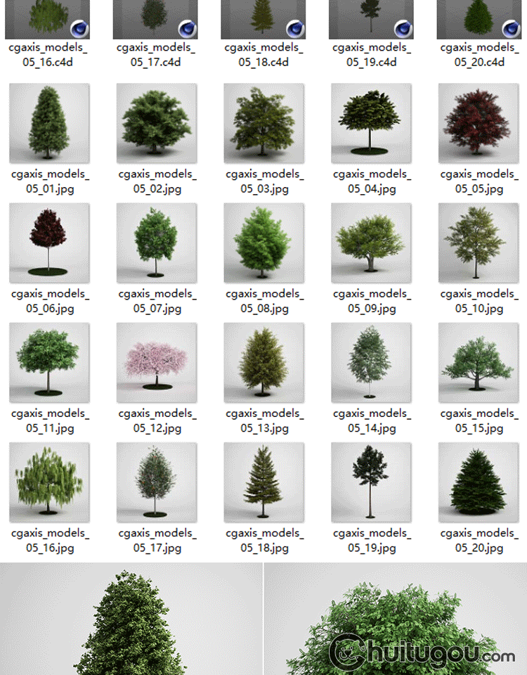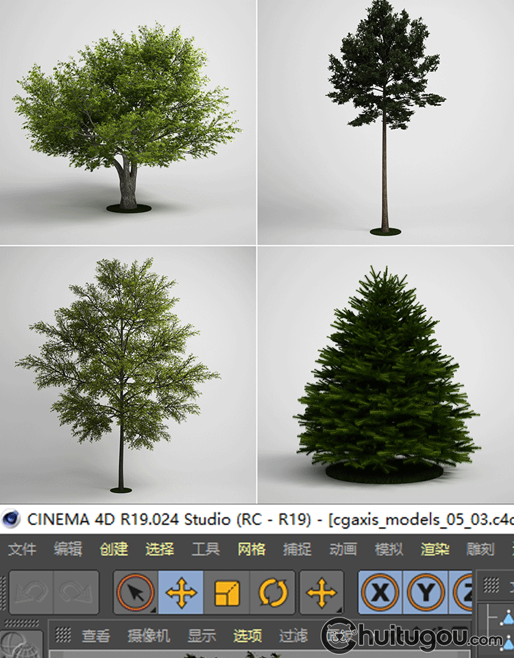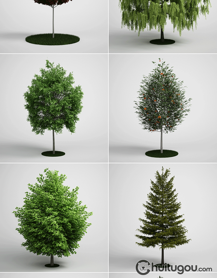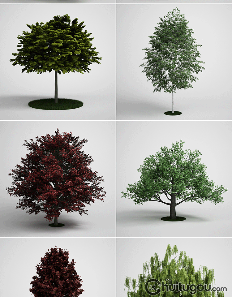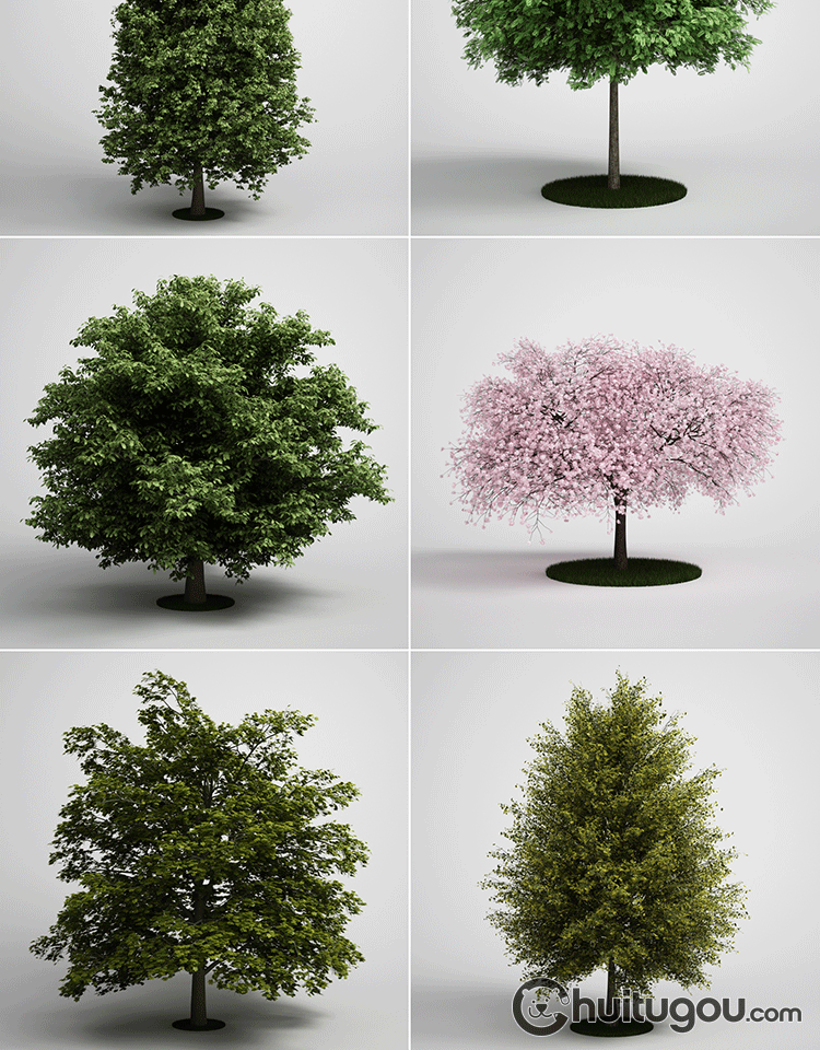 写实自然树木模型C4D庭院植物大树FBX樱花树柳树OBJ渲染设计素材