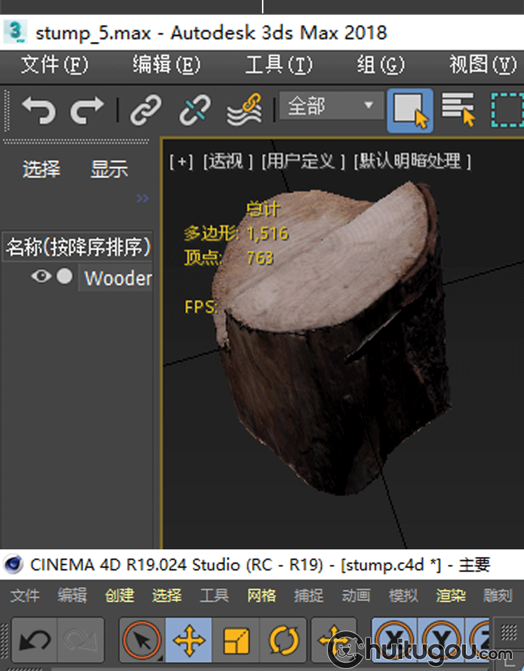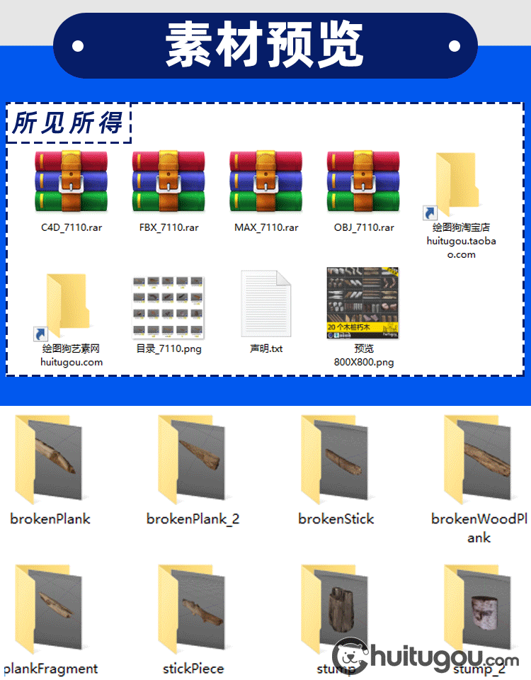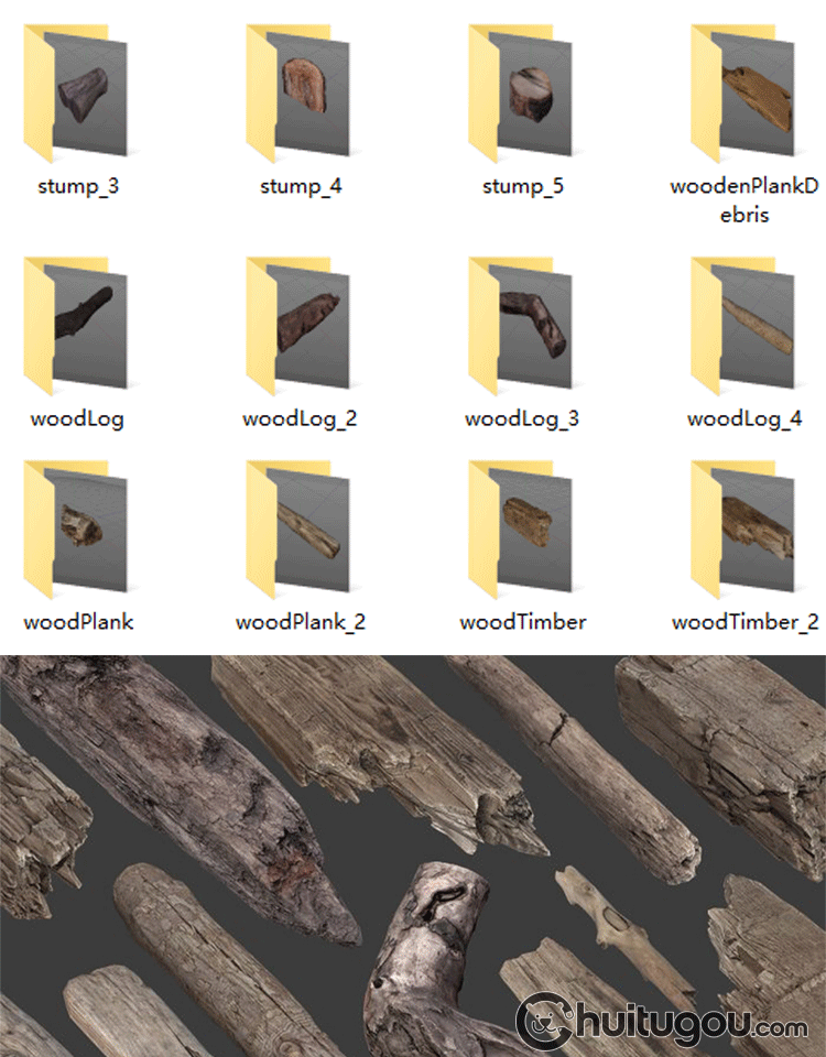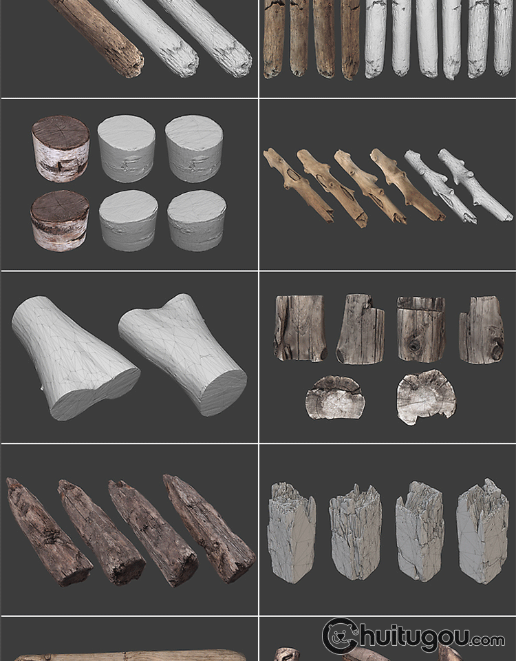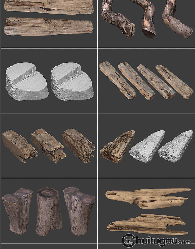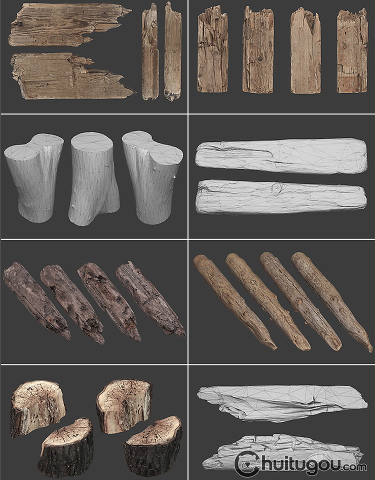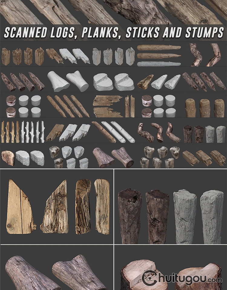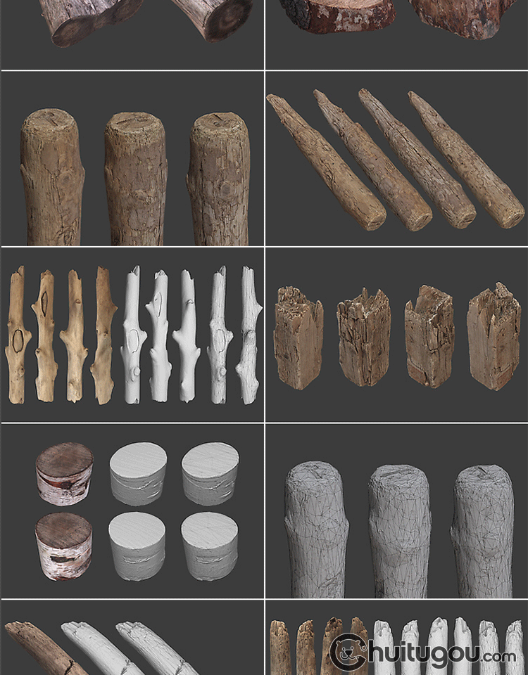 写实扫描C4D木板木棍树桩3D模型MAX破木朽木旧木头FBX建模素材OBJ