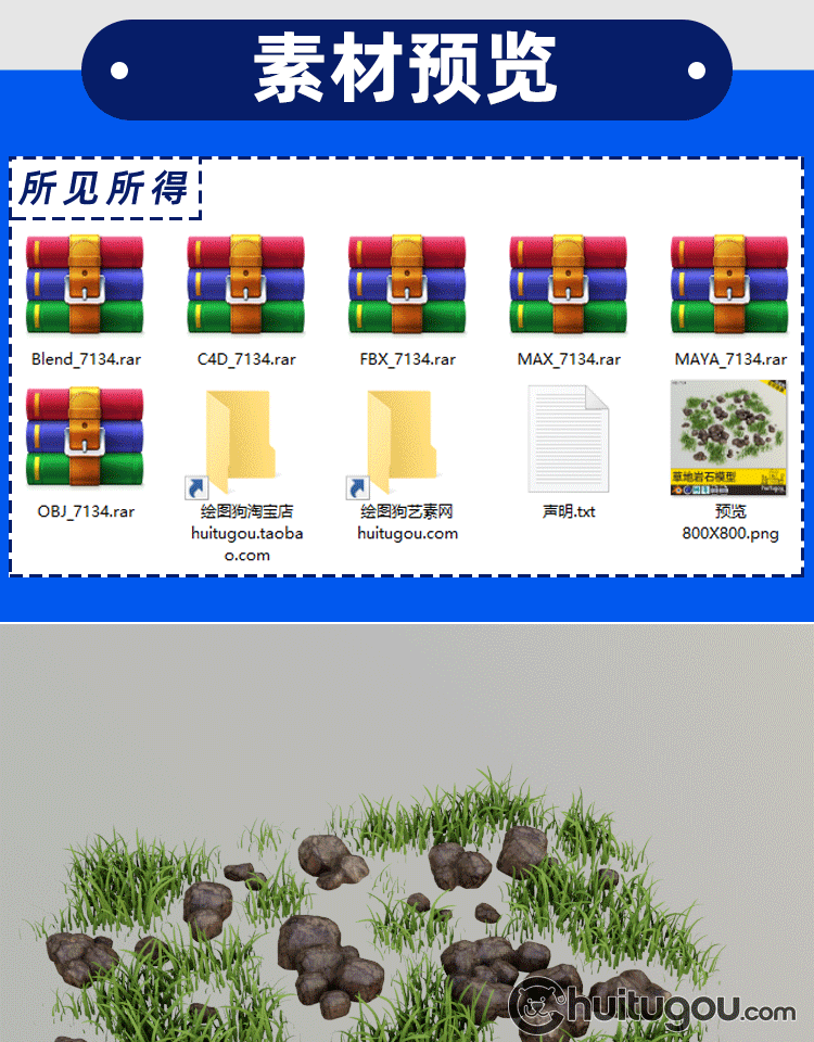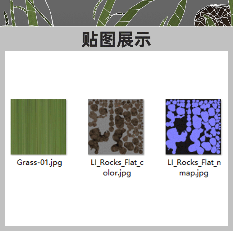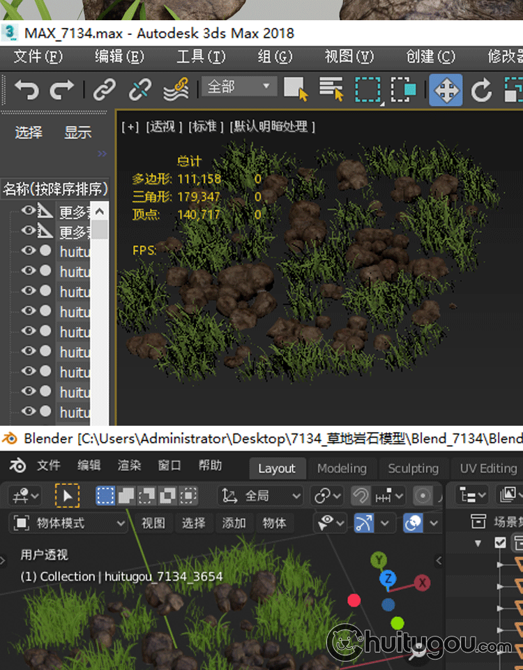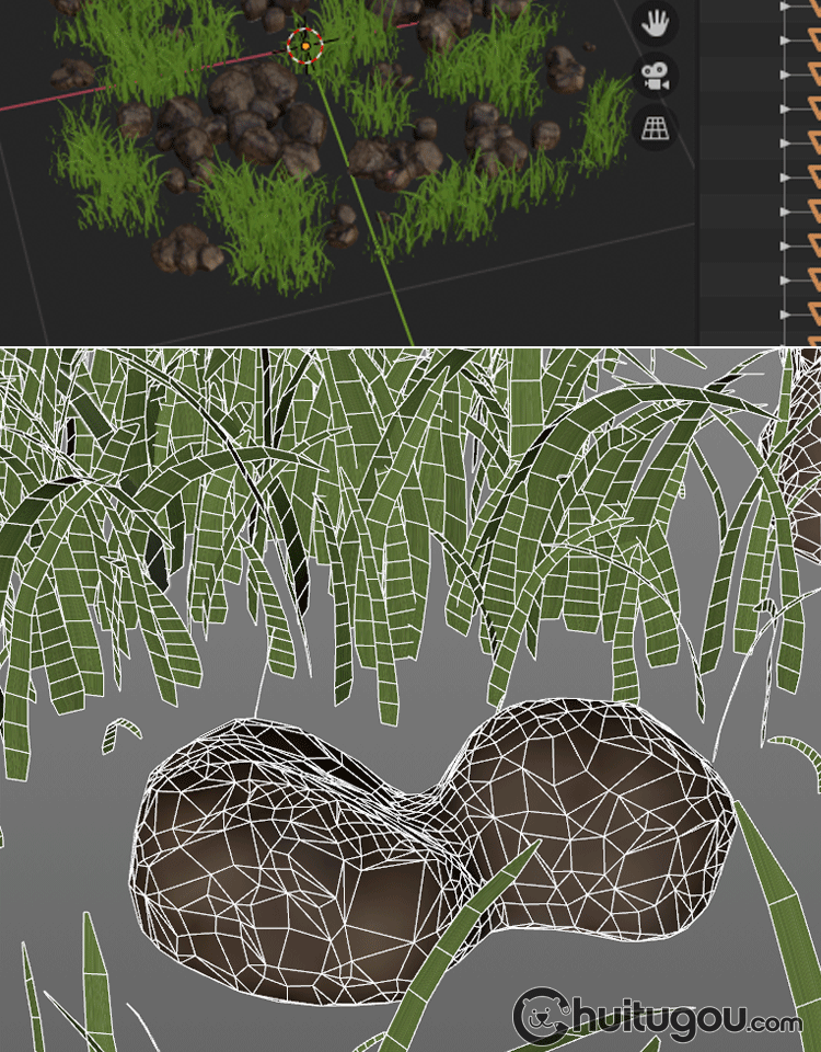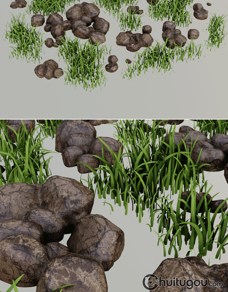 写实PBR自然草地岩石模型Blender小草坪C4D低模MAX建模渲染3D素材