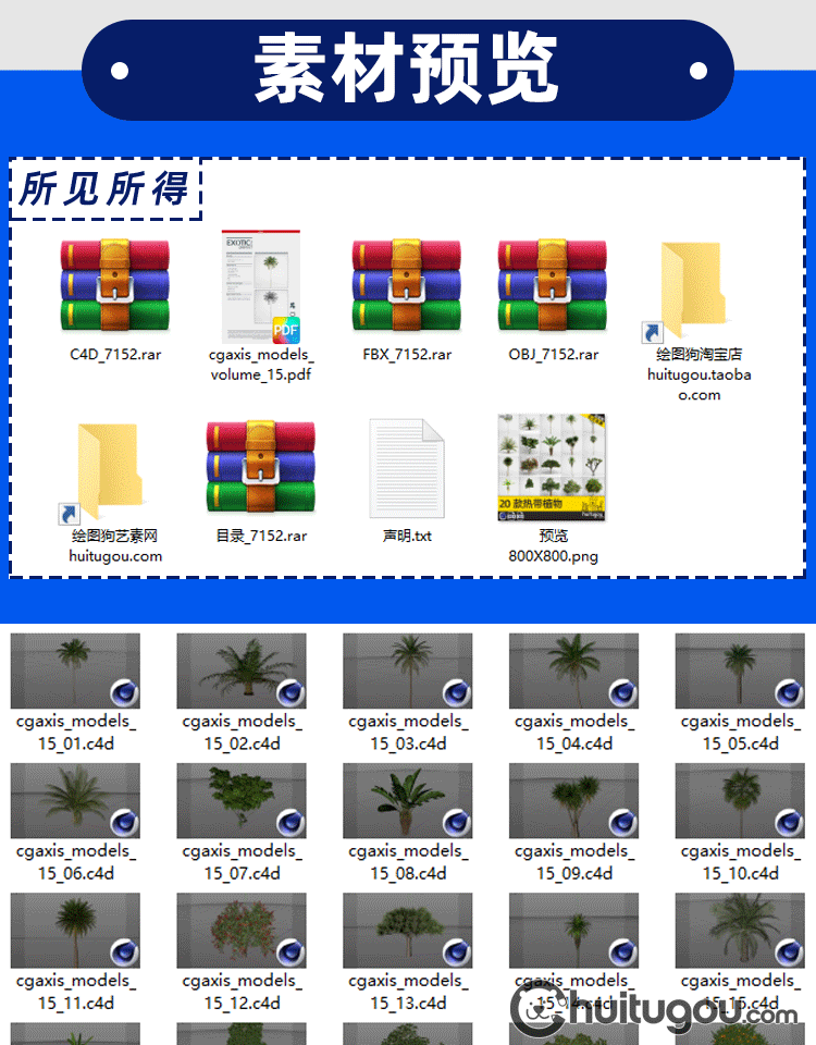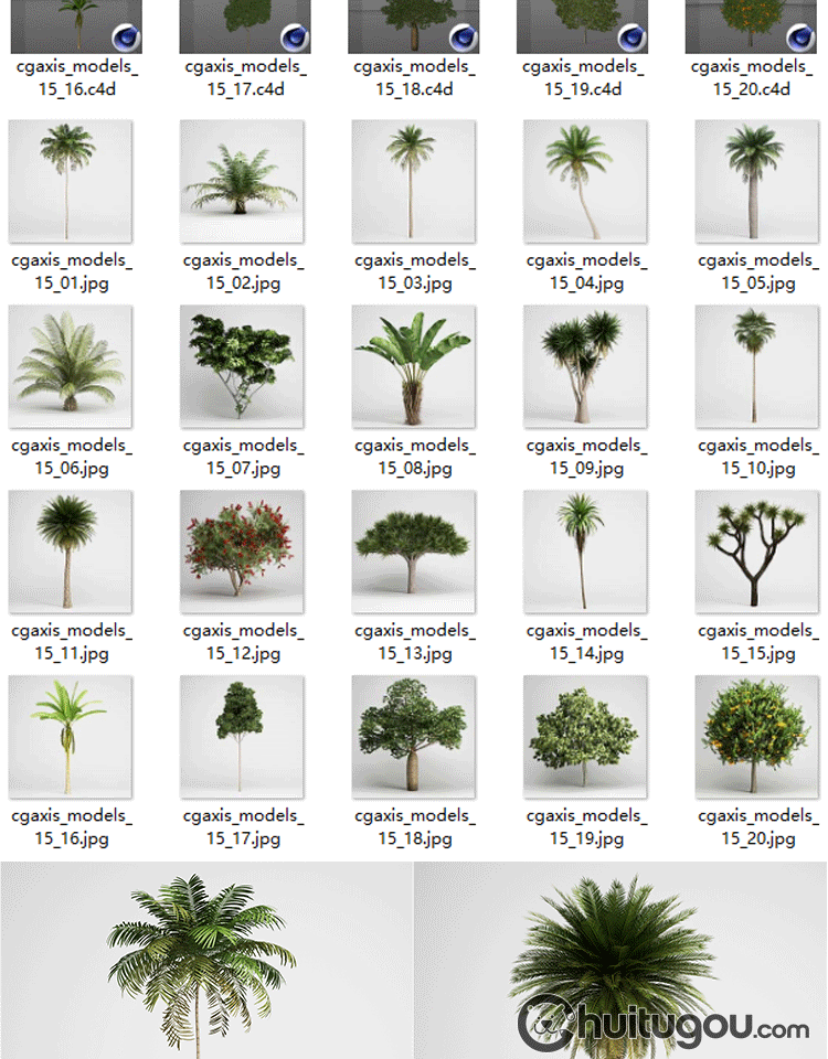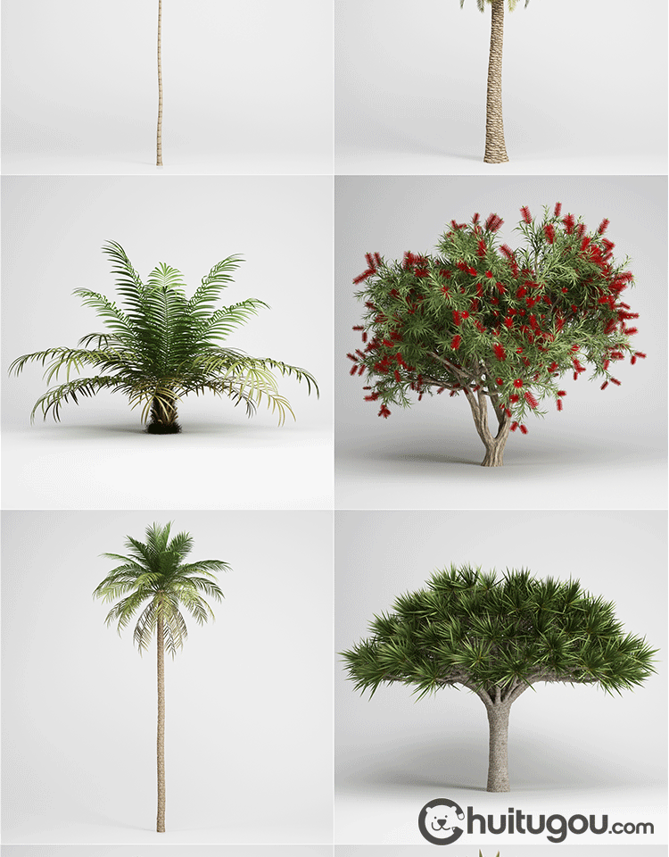 C4D写实热带植物模型FBX铁杉椰树剑麻类灌木沙地树木OBJ渲染素材