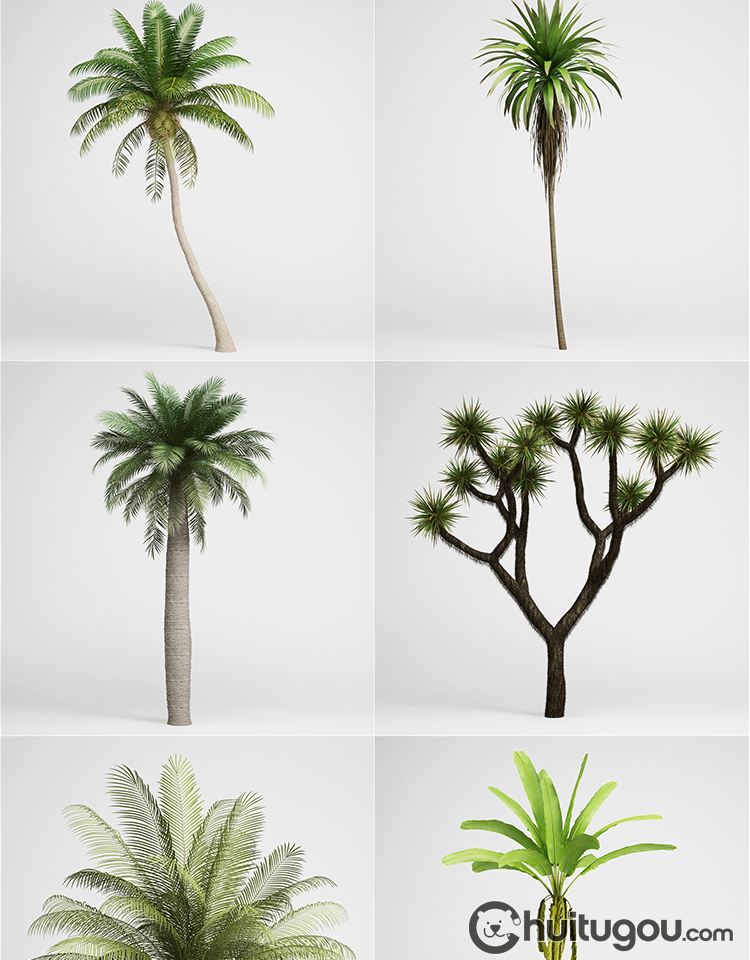 写实热带植物3D模型C4D棕榈树剑麻植物包FBX三维建模渲染设计素材