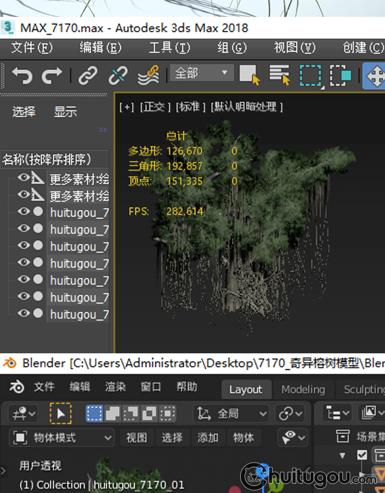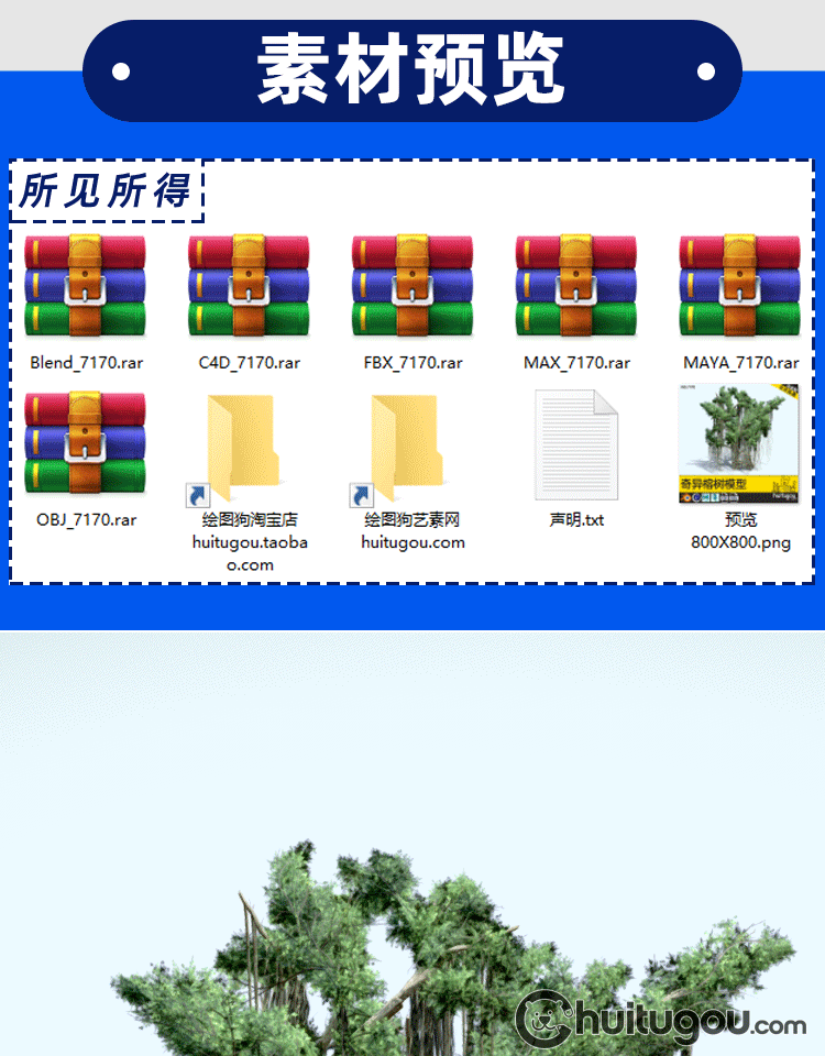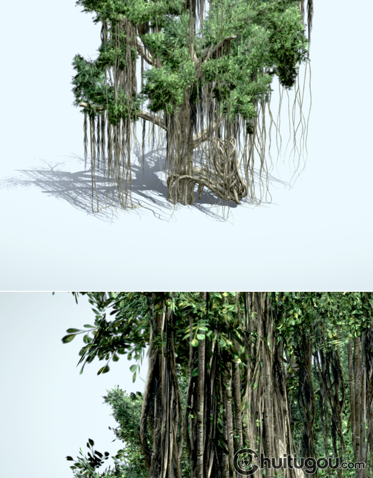 Blend古老榕树大树3D模型C4D枝繁叶茂的树木MAYA渲染设计素材FBX