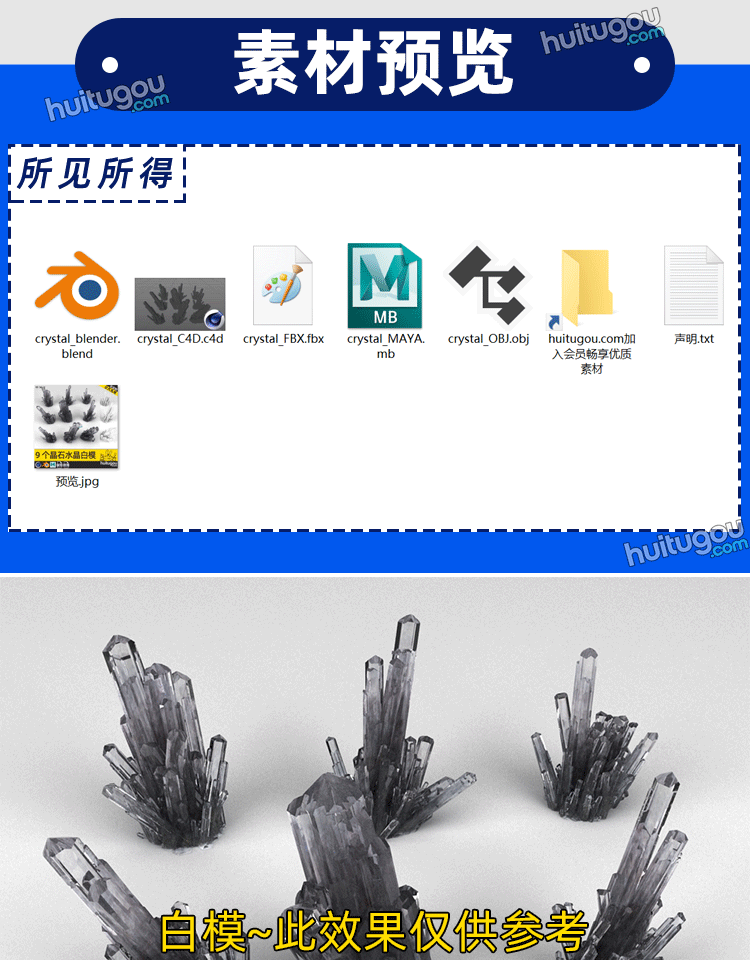 C4D晶石水晶模型素材Blender低模FBX白模obj 3D设计建模渲染素材