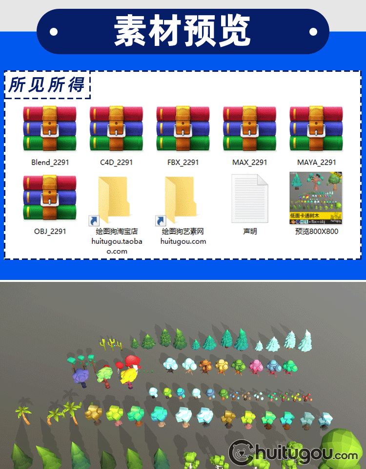 低多边形风格3D树木模型C4D卡通植物包MAX桦树柳树FBX灌木椰树OBJ