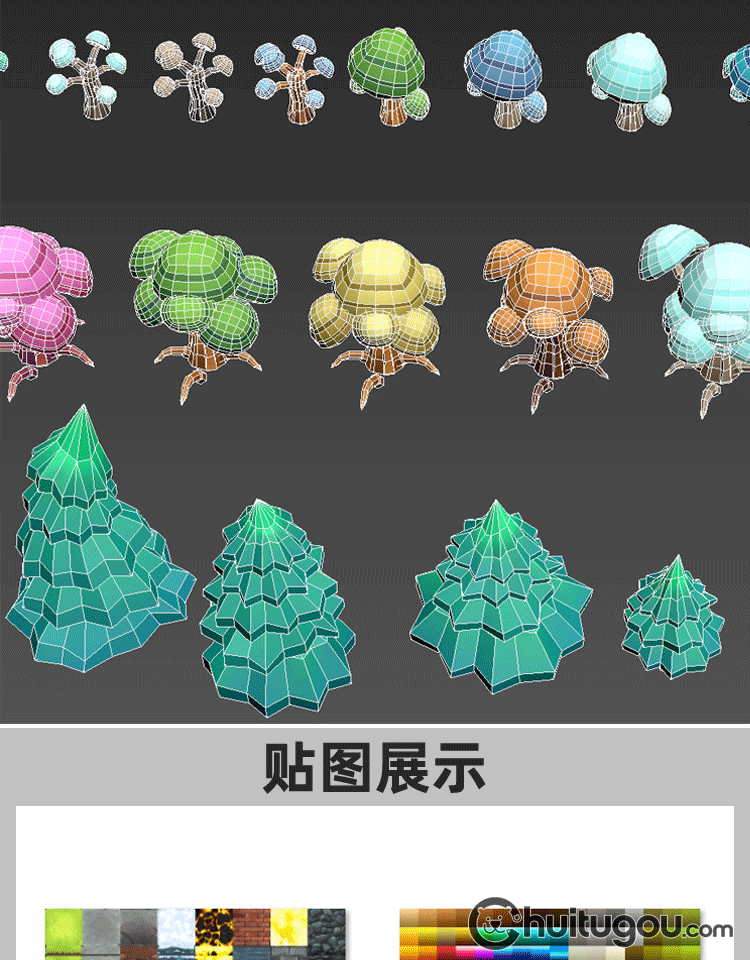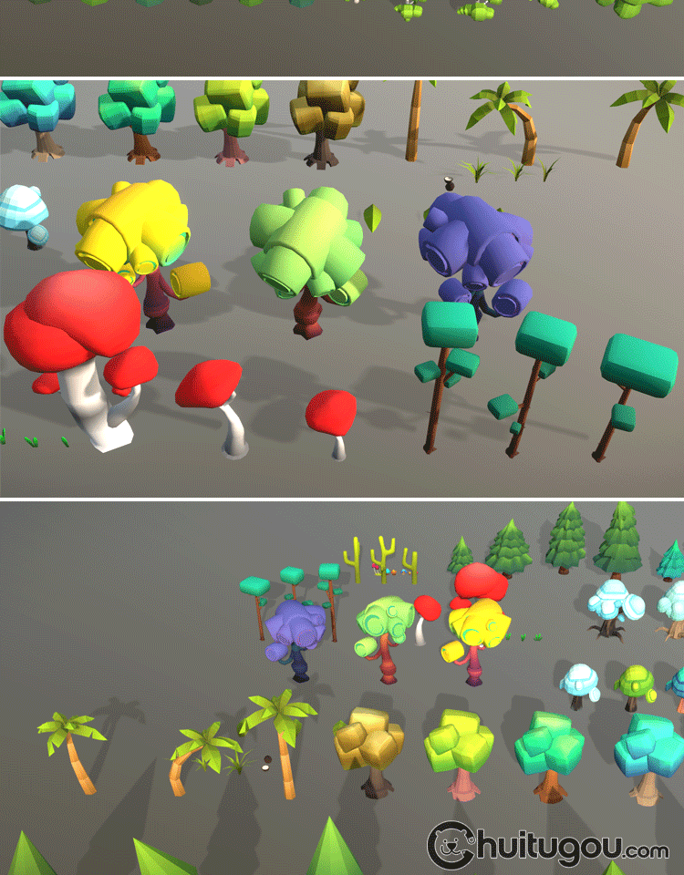 多边形风格化树木模型C4D卡通可爱植物MAYA杉树棕榈树3D素材文件