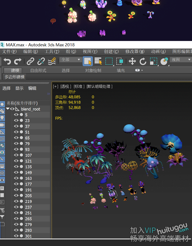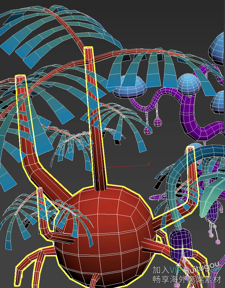 Blender科幻风格花草植物模型包C4D低面卡通风格3D模型FBX格式OBJ