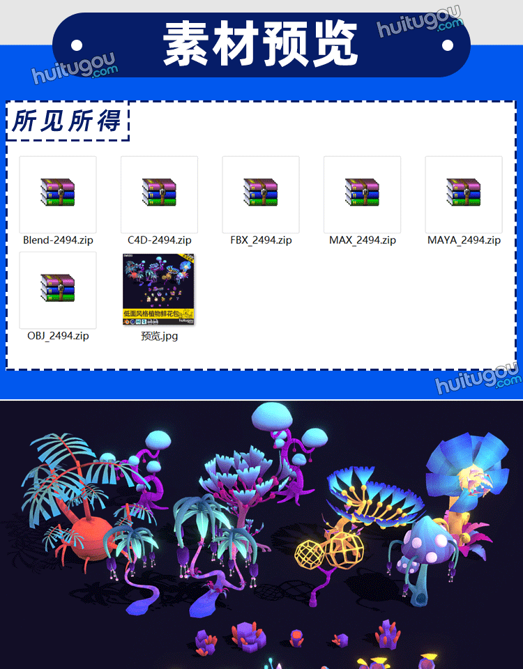C4D卡通鲜花植物花草模型包Blender科幻低面风格资产包FBX格式OBJ