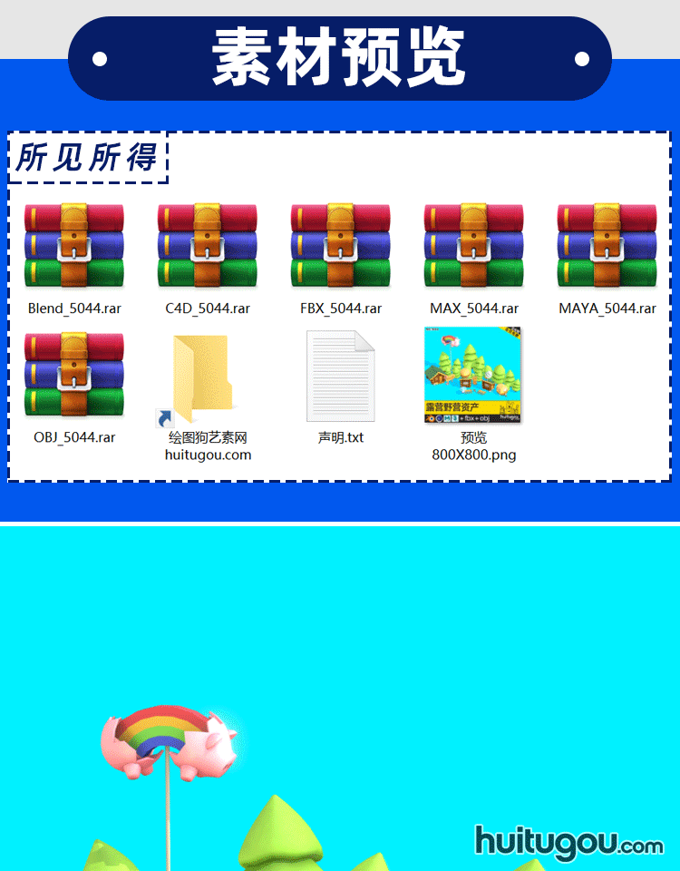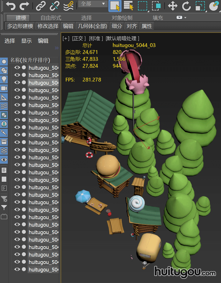 低面后花园资产Blend凉亭模型C4D木桥MAX卡通荷花睡莲岩石OBJ素材