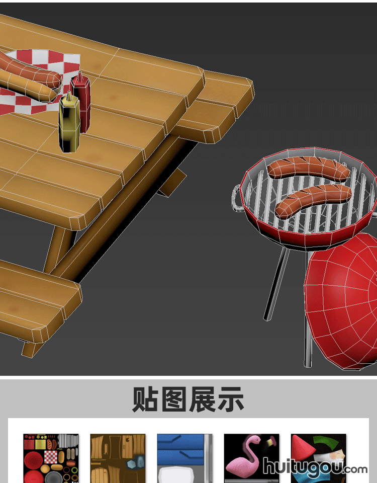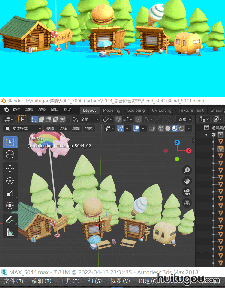 Q版 露营野餐资产Blender沙滩木屋C4D树木桌子烧烤架OBJ FBX素材