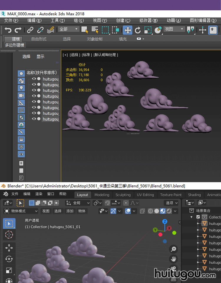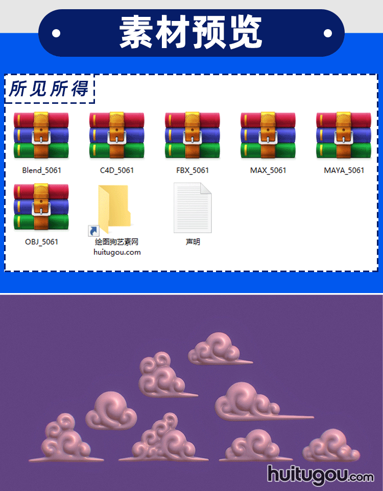 卡通云朵第三季C4D腾云祥云资产包Blend FBX OBJ MAYA MAX 3D素材