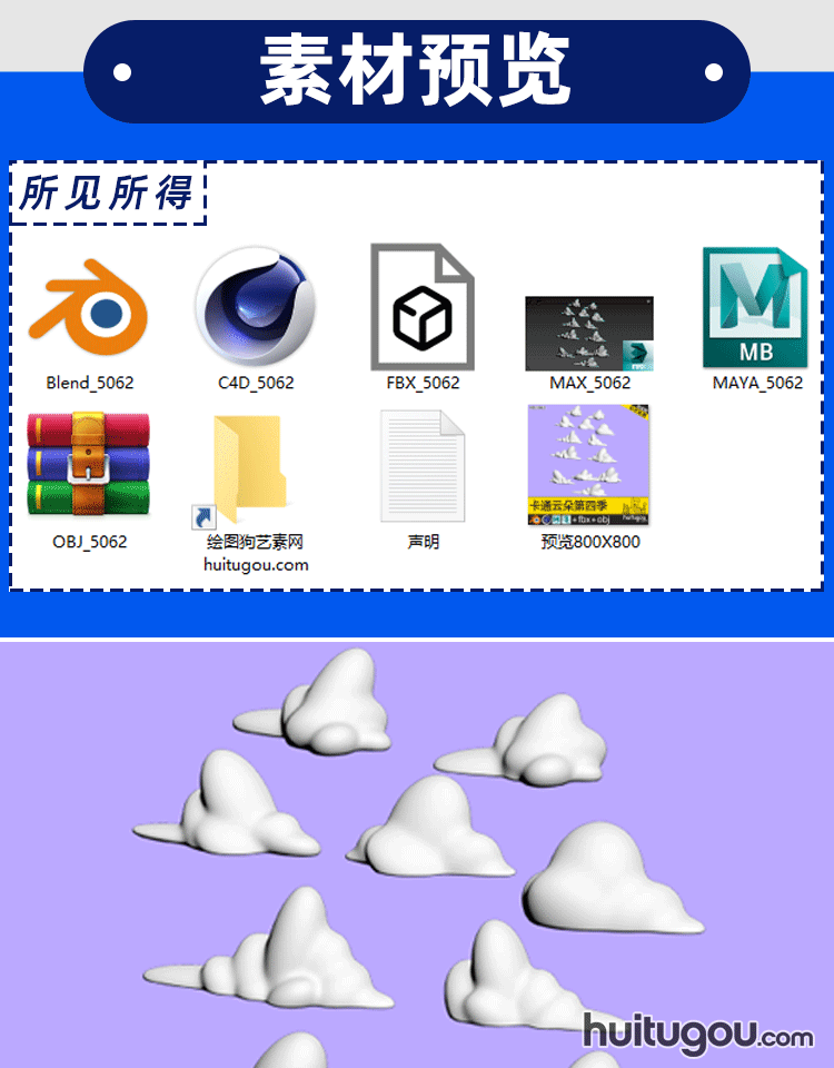 Q版可爱云朵第七季C4D卡通浮云资产集Blender FBX OBJ mb MAX素材