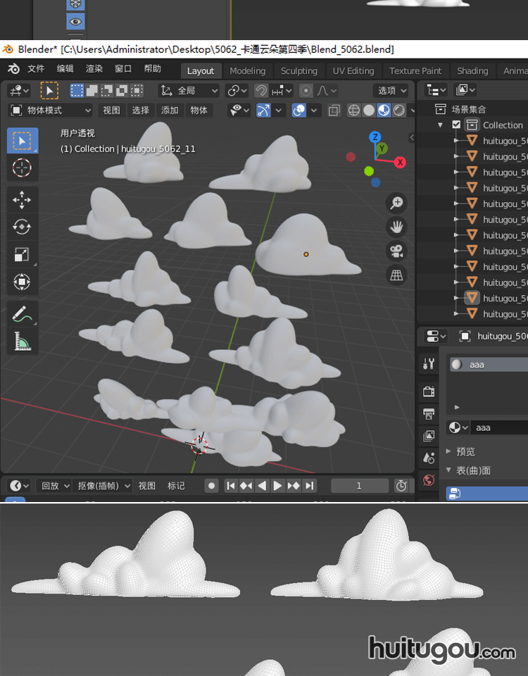 卡通Q版云朵第六季C4D晴天云儿模型资产包Blender FBX OBJ mb素材