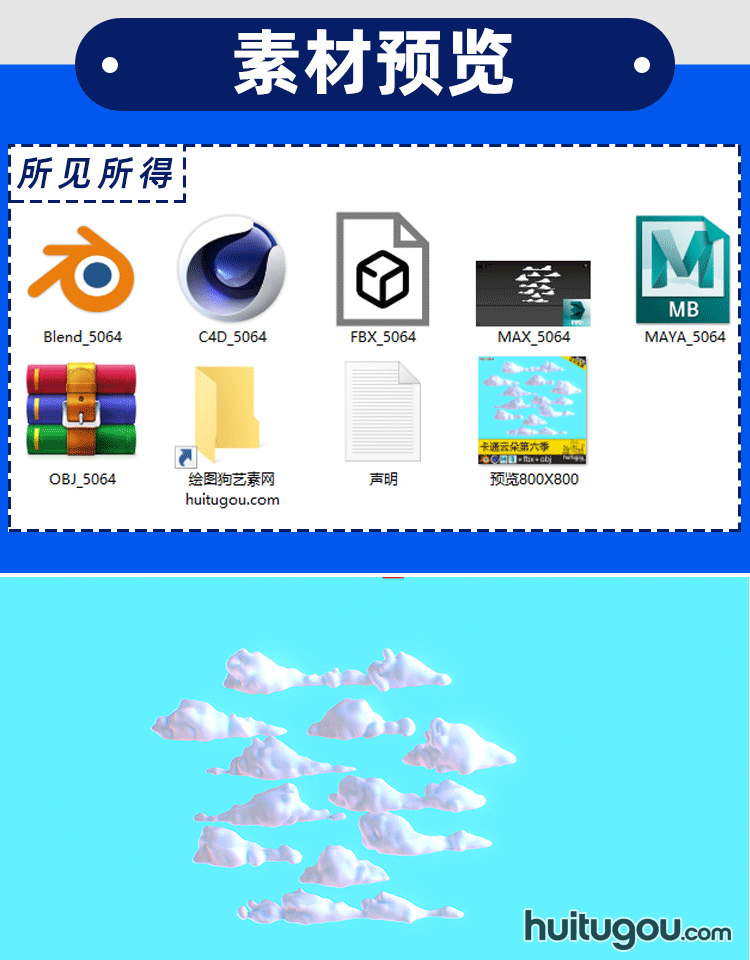 卡通Q版云朵第六季C4D晴天云儿模型资产包Blender FBX OBJ mb素材