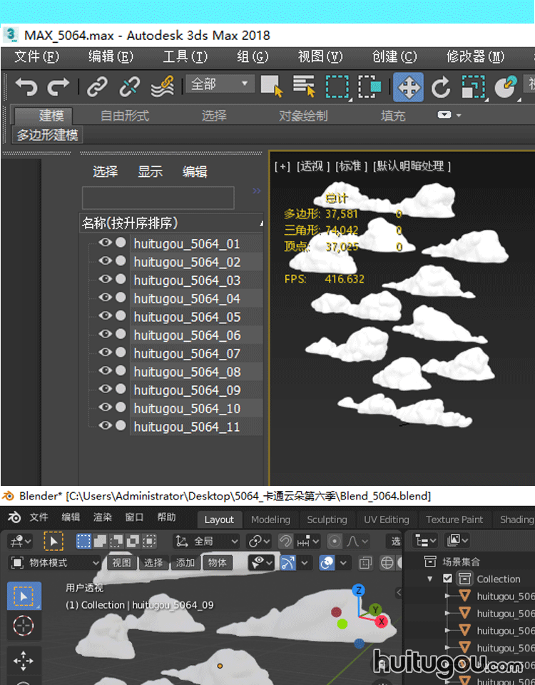 卡通云朵第三季C4D腾云祥云资产包Blend FBX OBJ MAYA MAX 3D素材