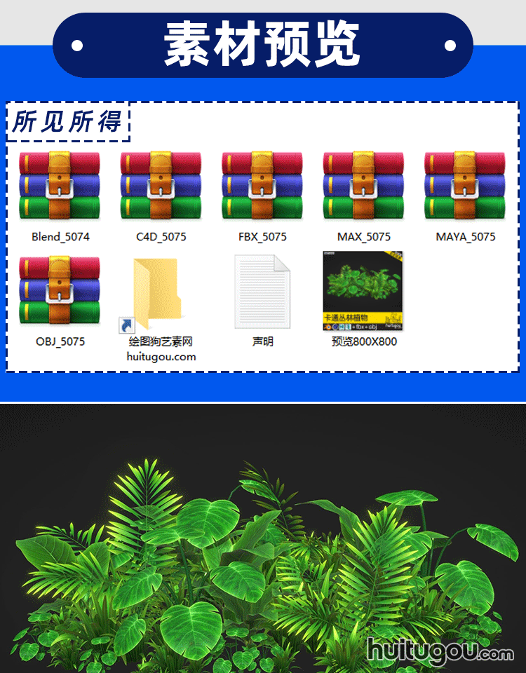 卡通 可爱蕨类植物Blender岩石Q版羚羊C4D FBX OBJ MAYA MAX素材