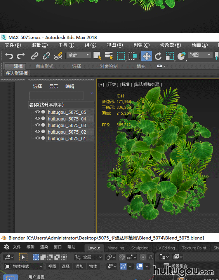 卡通 蕨类绿色植物模型C4D丛林沼泽水生杂草Blender FBX OBJ素材