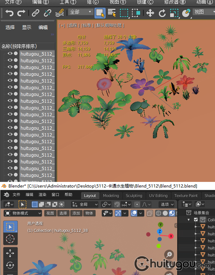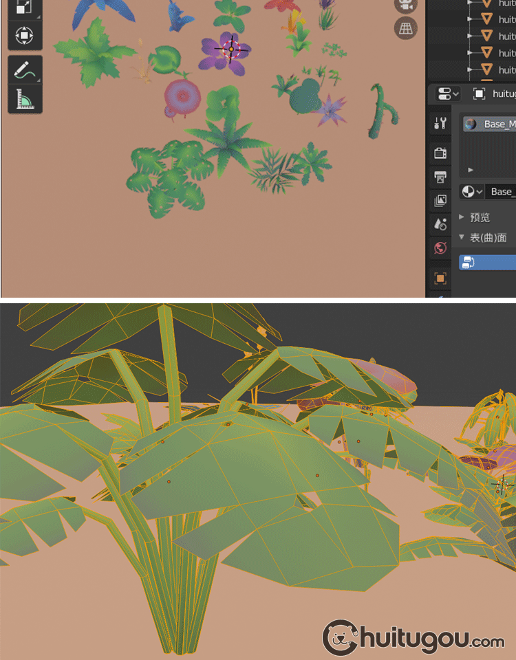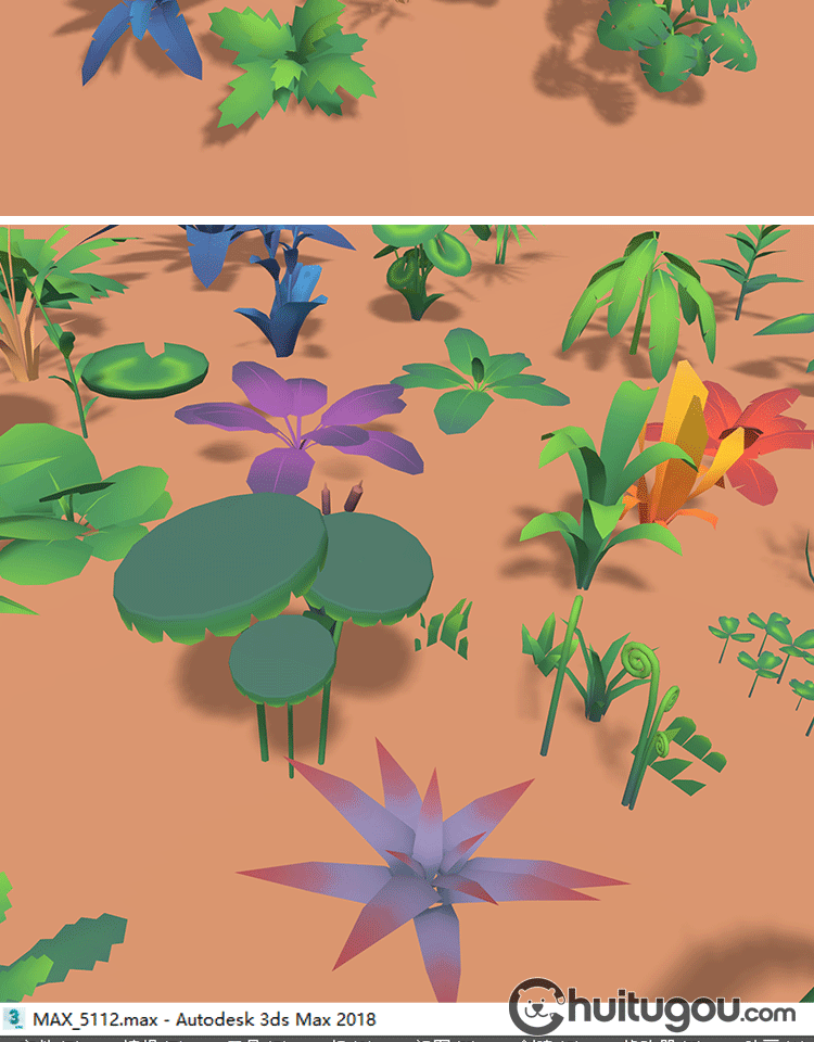 卡通 水生绿植包Blender低面风格C4D水草蕨类植物荷叶FBX OBJ素材