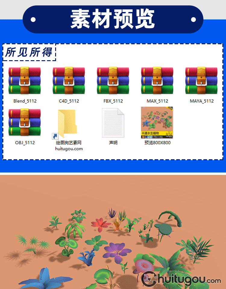 卡通 花卉植物包Blender低矮花朵小草模型C4D格式MAX OBJ FBX素材