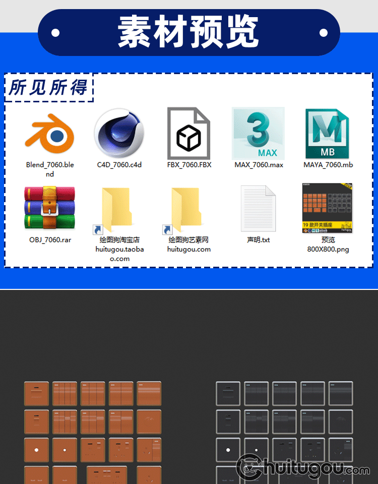Blender开关插座面板模型C4D三维建模渲染设计素材OBJ源文件MAYA