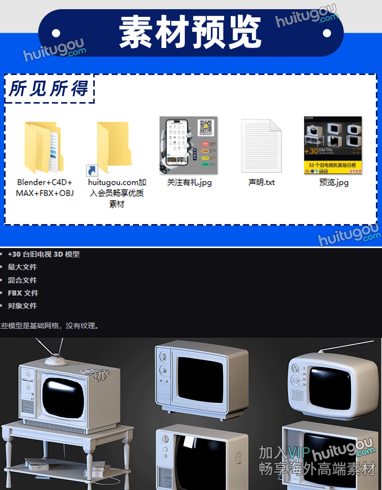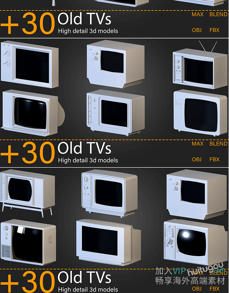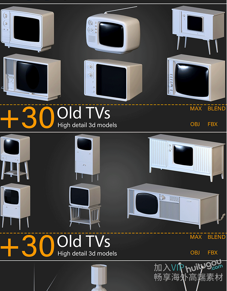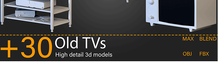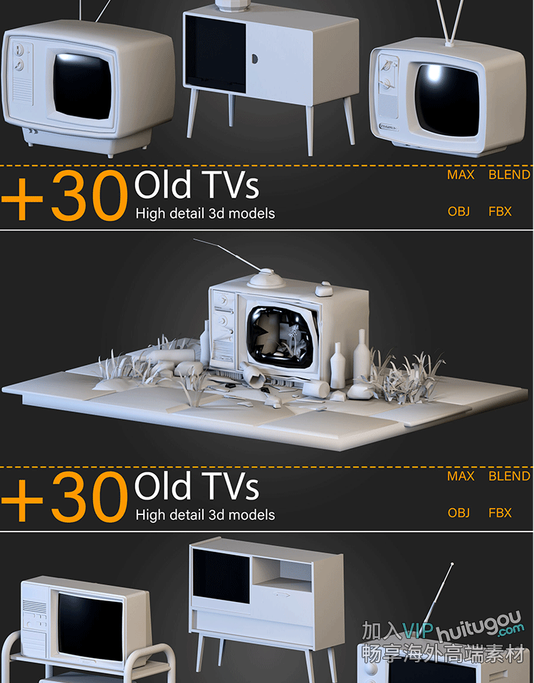 33个Blender复古老旧电视机基础白模C4D模型3D建模渲染FBX素材OBJ