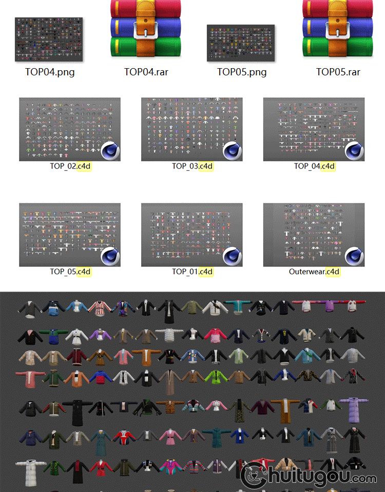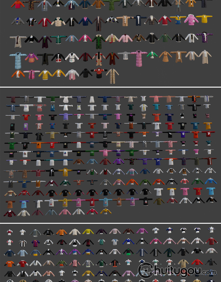 6套1000款上衣衣服3D模型C4D外套T恤短袖夹克FBX羽绒服MAX素材OBJ