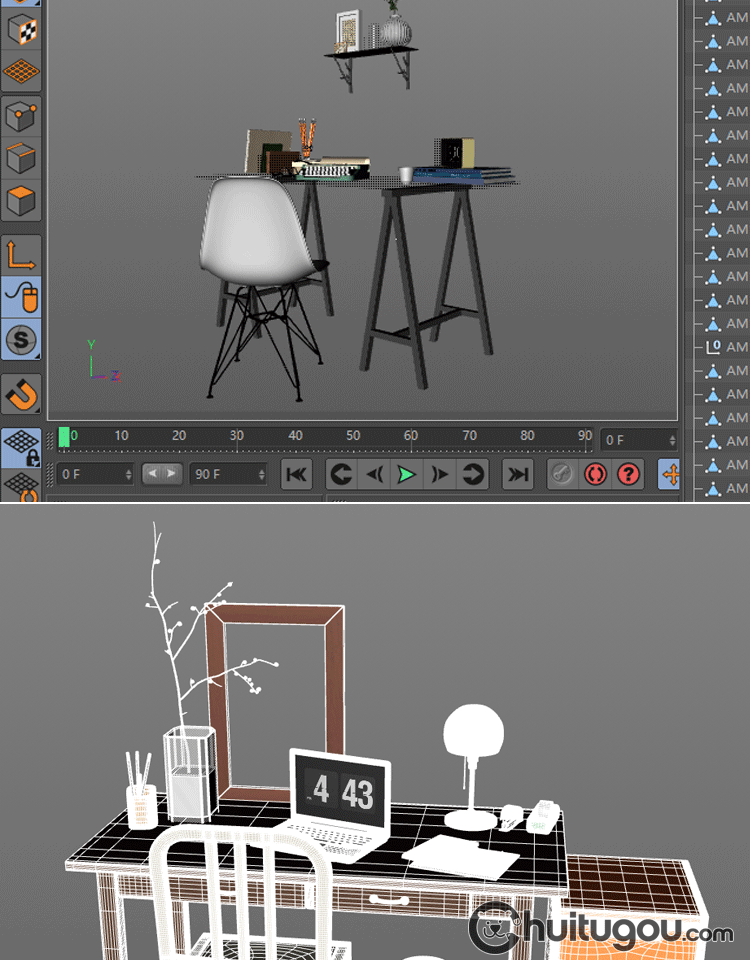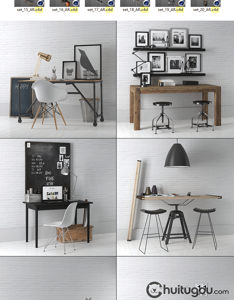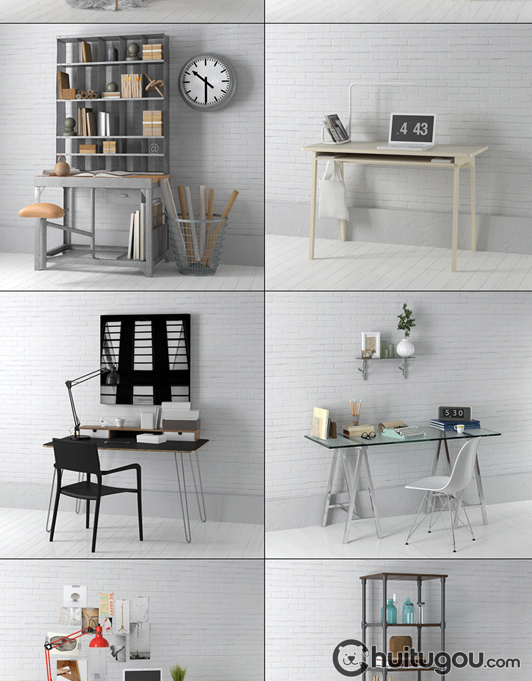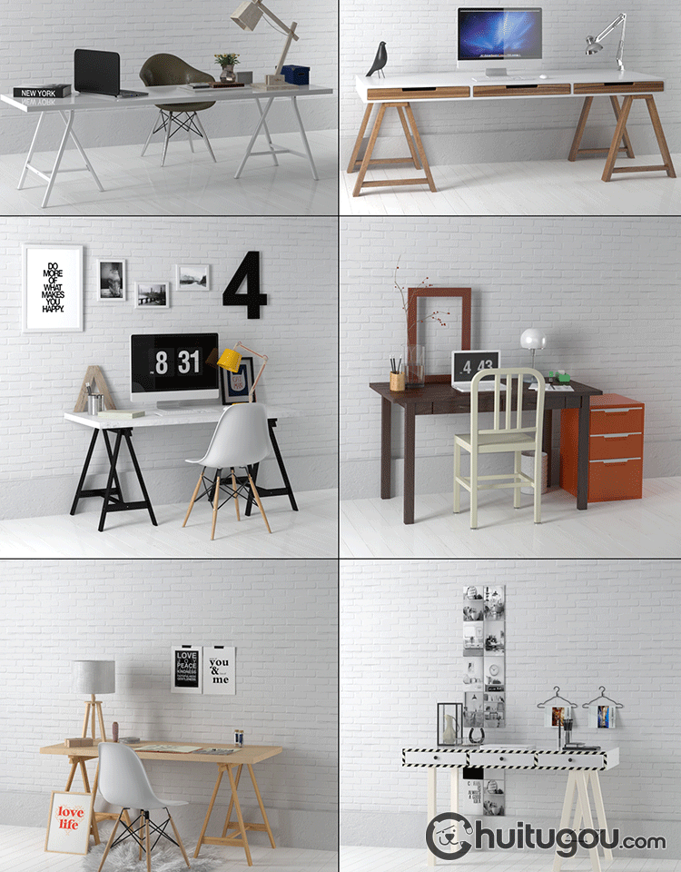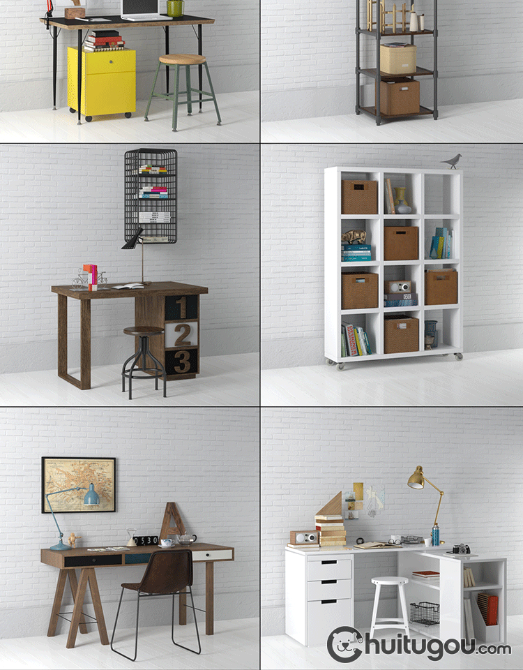 C4D写实书桌写字台工作台单体模型FBX工业风现代风格家具OBJ素材