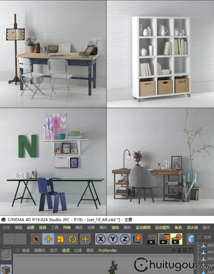 C4D室内写实复古装饰摆件艺术装置模型FBX格式OBJ渲染设计3D素材