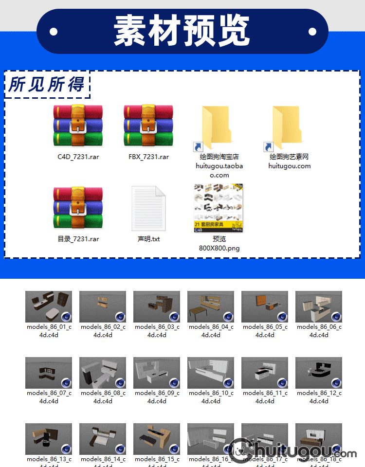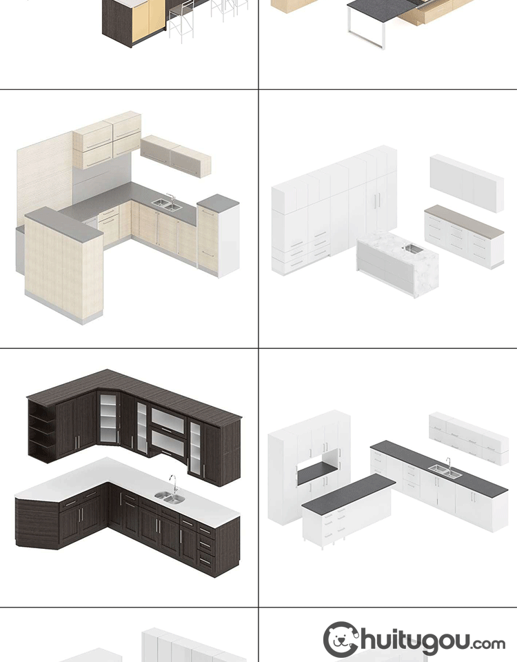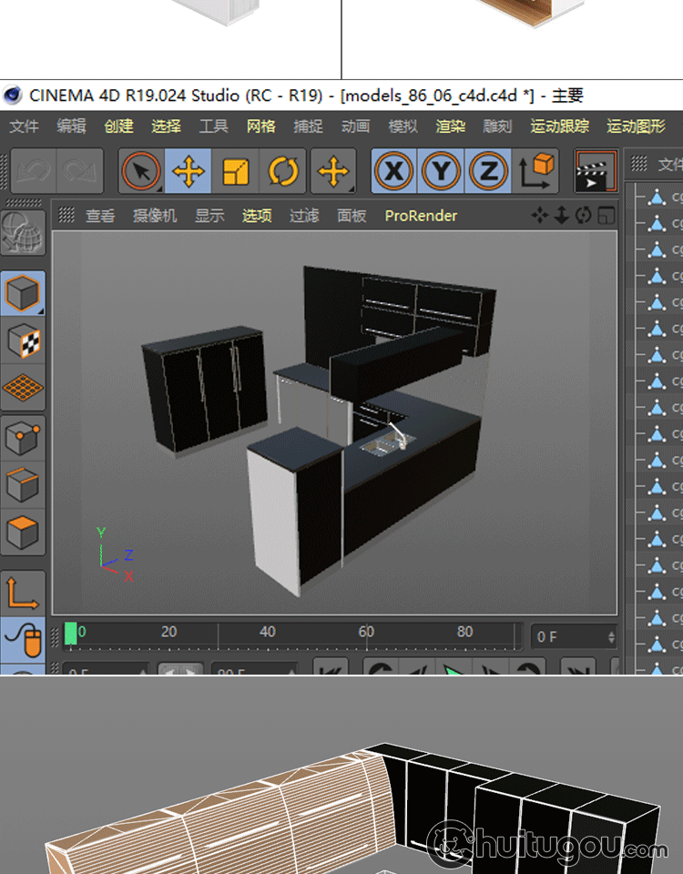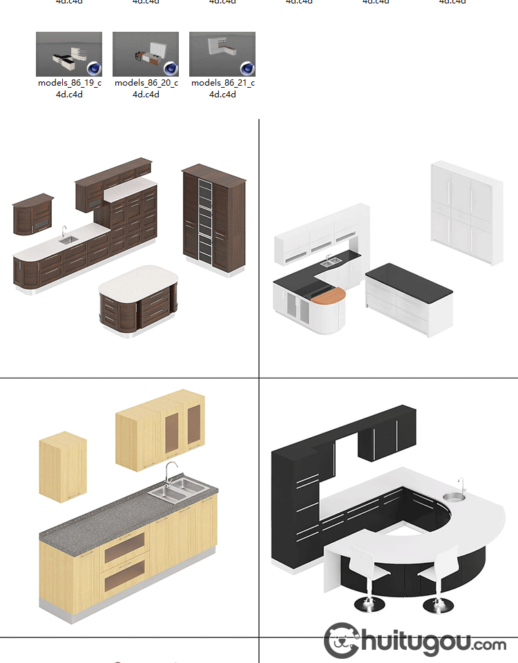 C4D厨房橱柜FBX吧台家具西厨3D模型建模渲染设计素材源文件