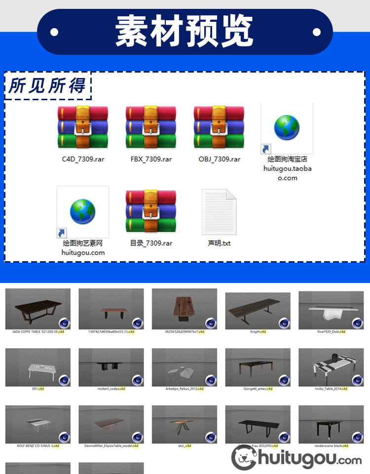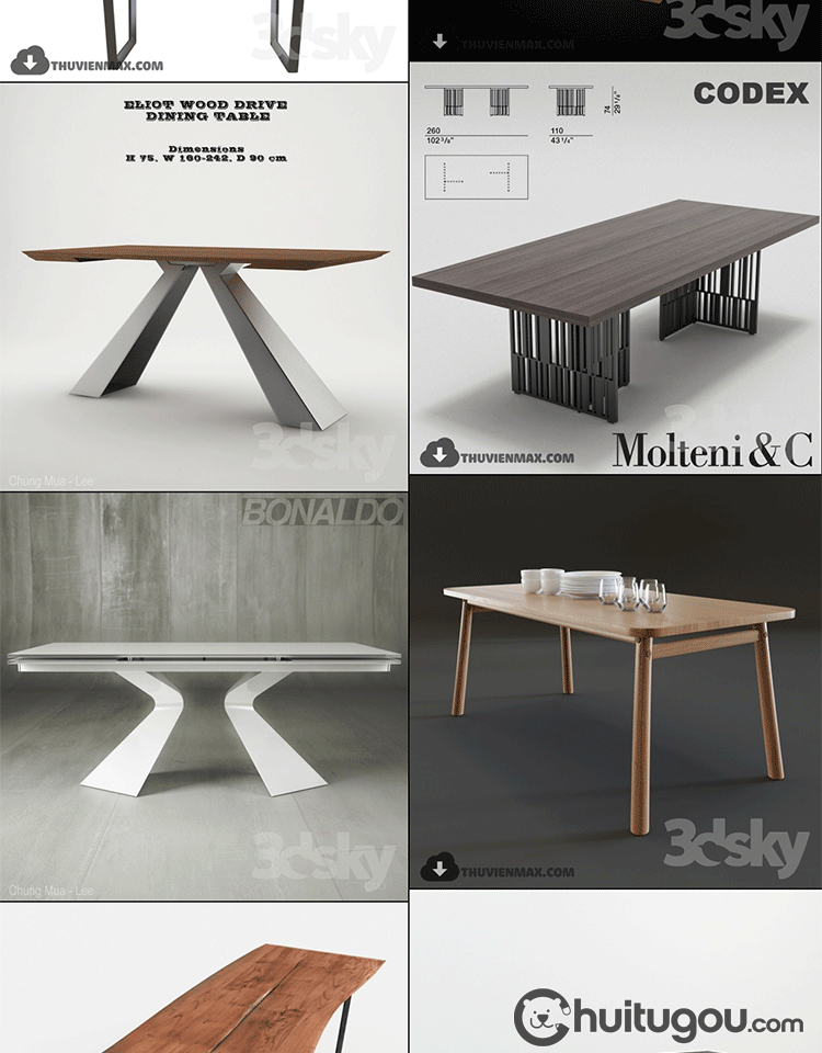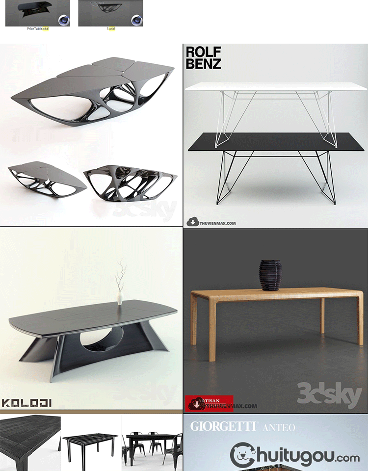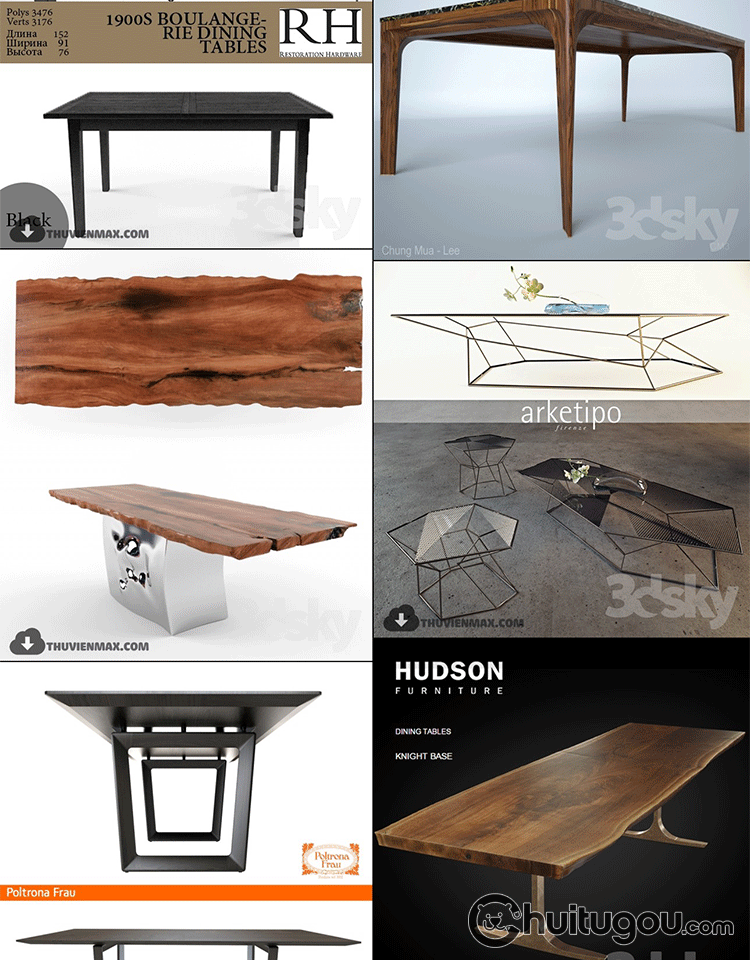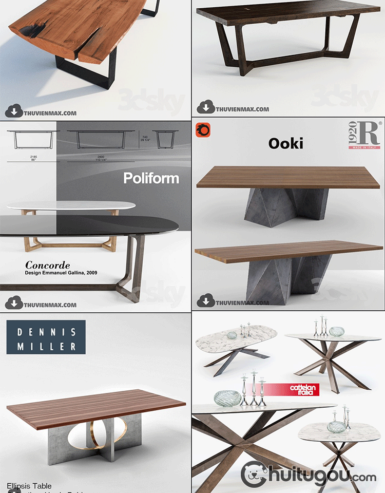 C4D写实室内家具FBX模型OBJ创意木头餐桌饭桌书桌3D建模渲染素材