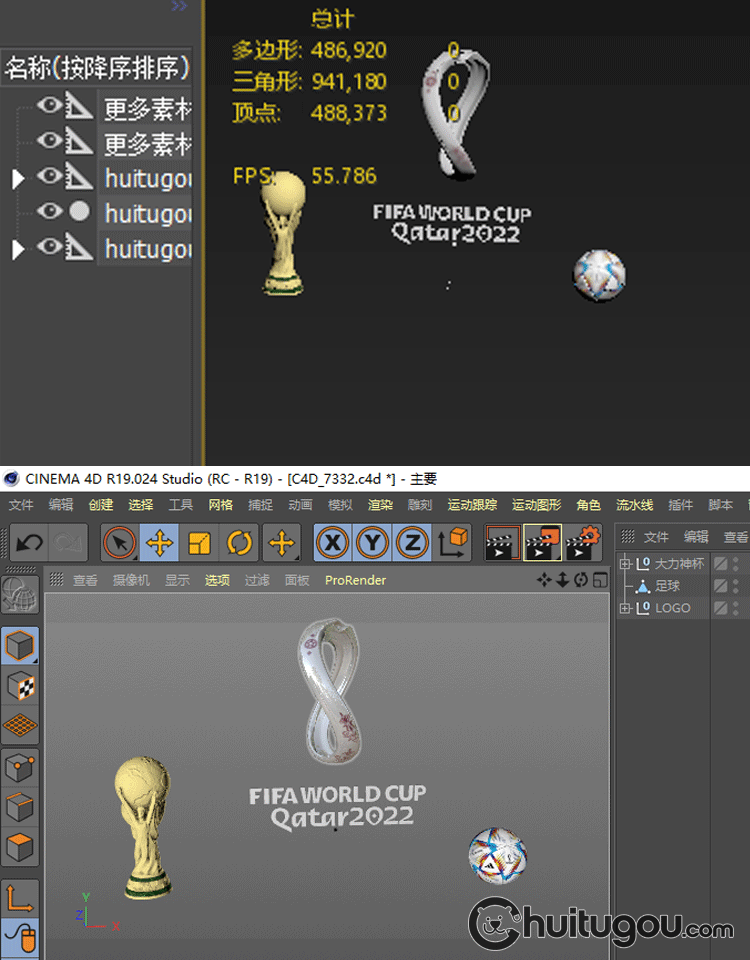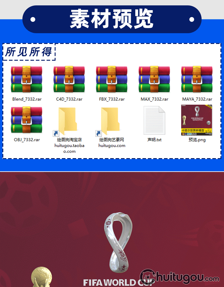 Blender卡塔尔世界杯logo图标3D模型C4D足球大力神杯MAYA素材OBJ