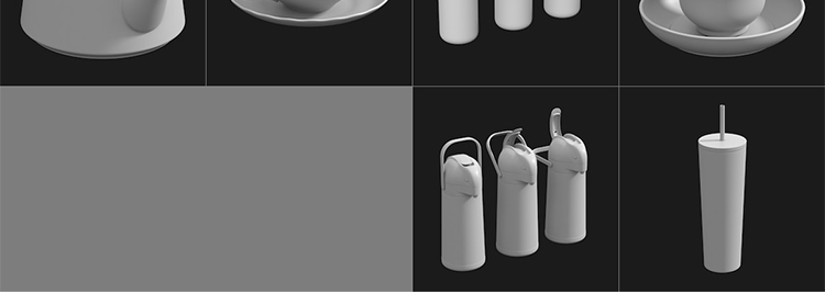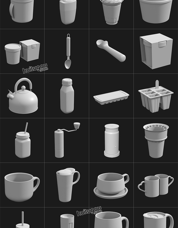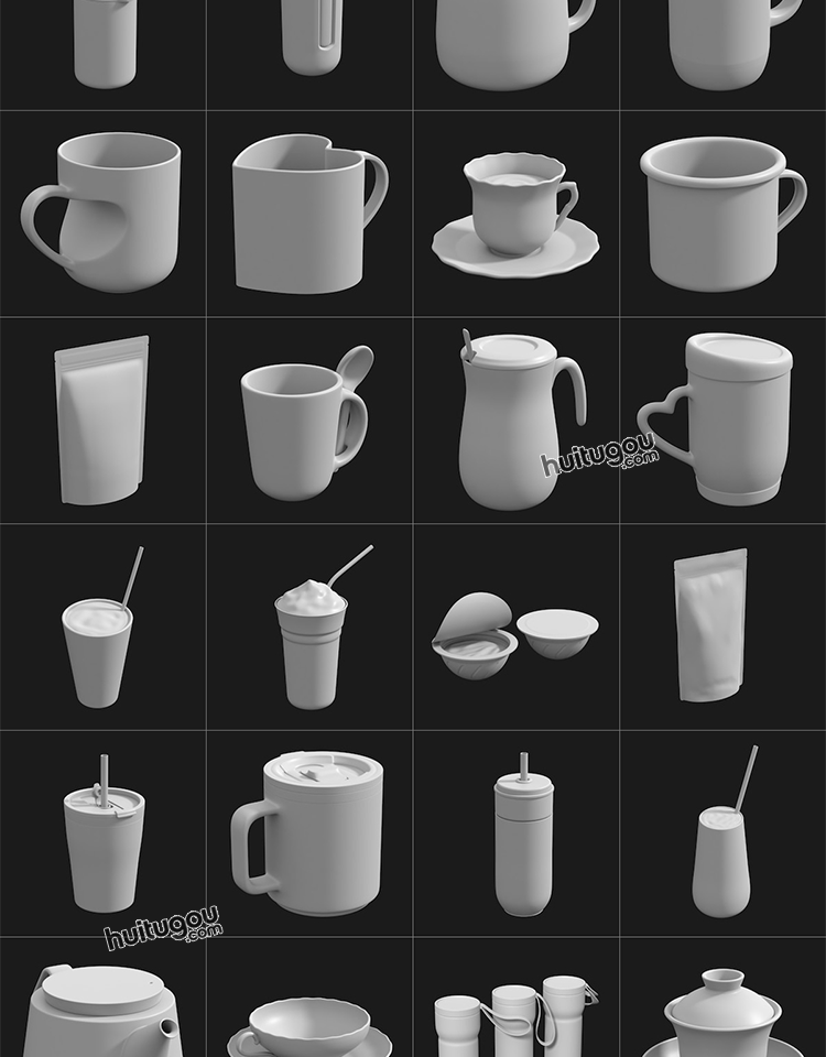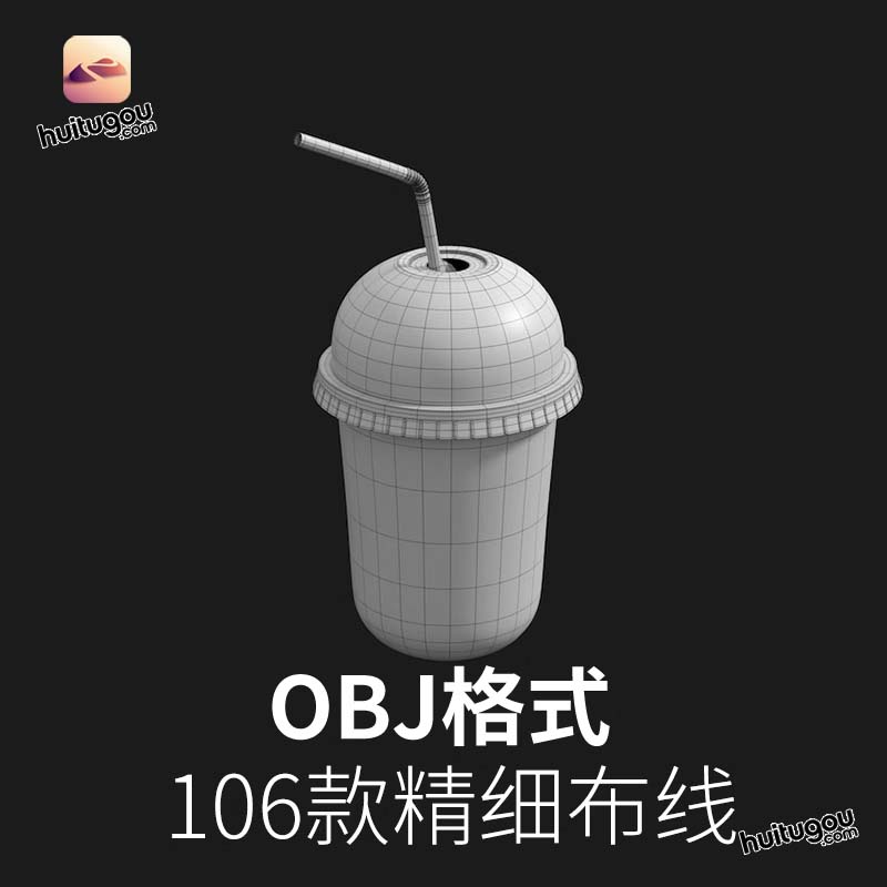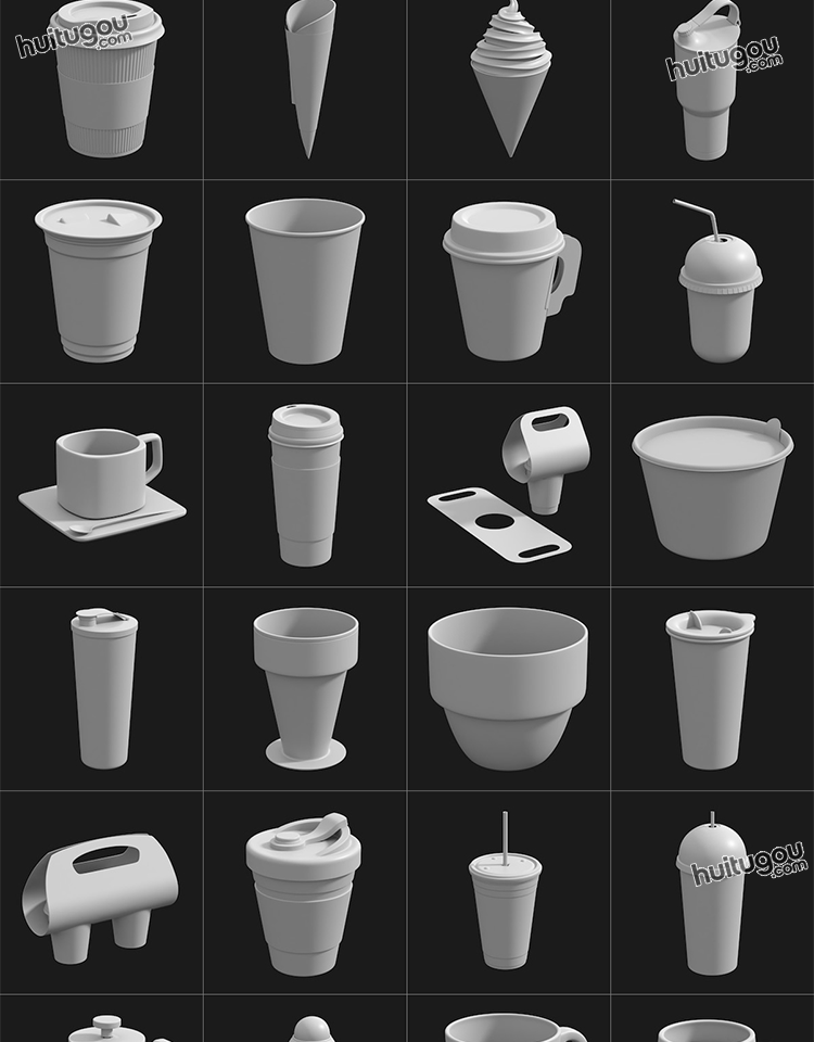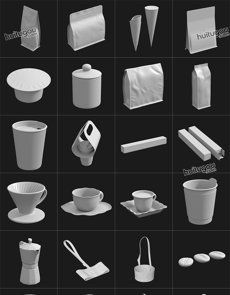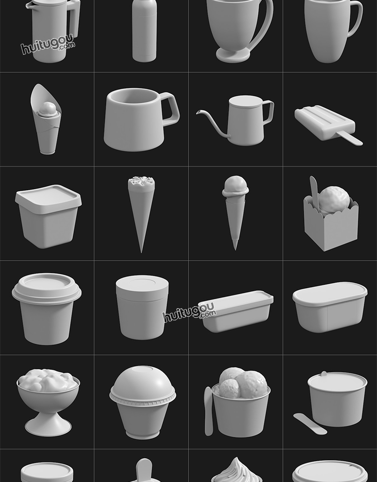 咖啡杯茶杯奶茶甜品冰激凌酸奶包装食品袋3D模型OBJ格式nomad素材